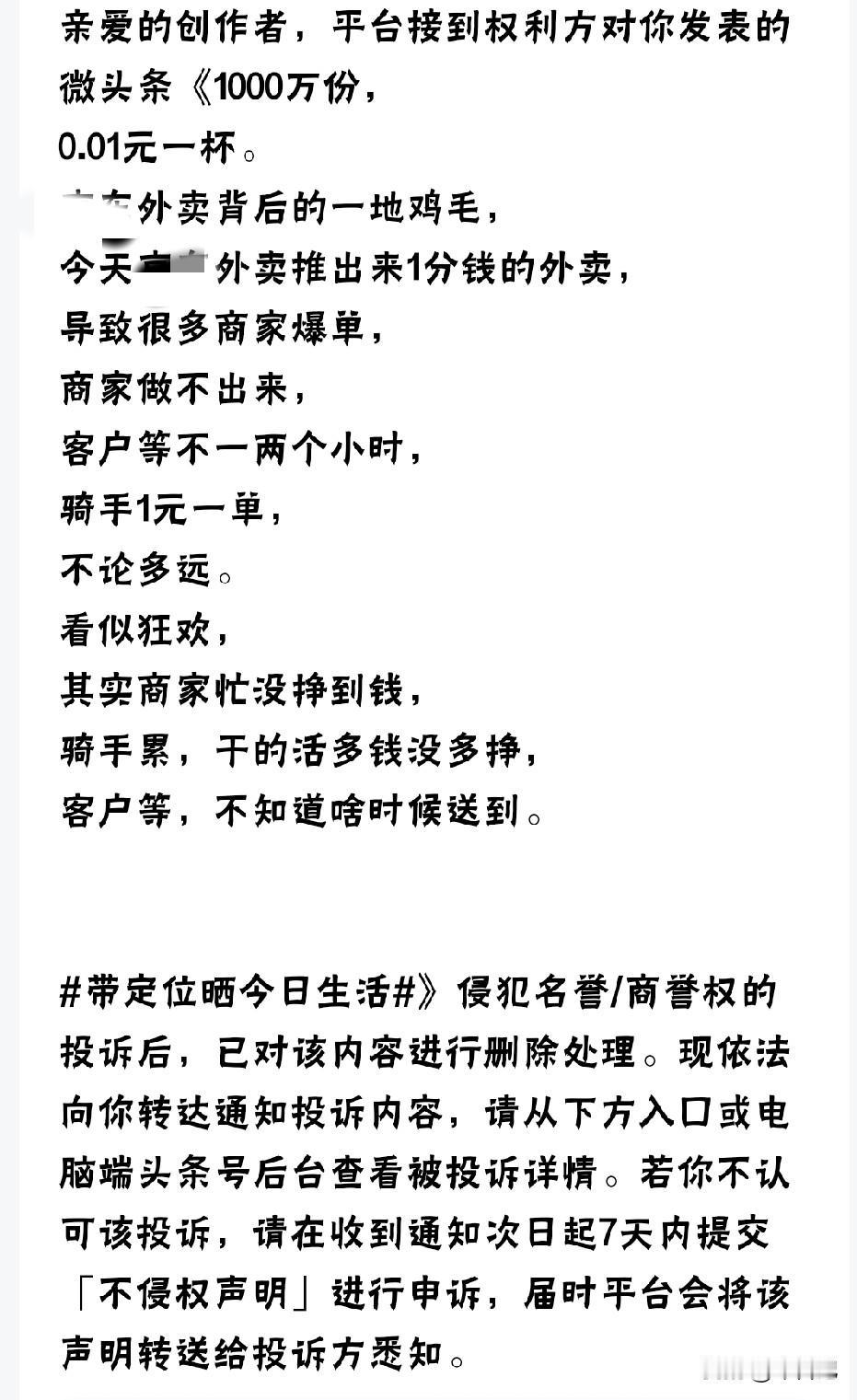 被两个大公司投诉也是没谁了, 本想发个微头条挣点钱, 结果发的微头条还没有流量, 还被两个大公司投诉。 钱没挣到,还背上了官司。