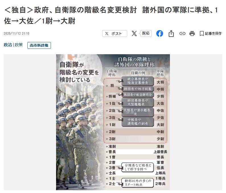 比起改名,自卫队更重要的还是需要增设对应北约OF-6准将的军衔,现在将补人数有点
