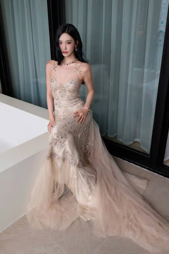 杨颖这身“叶脉”礼服太绝了!立体剪裁像把森林穿在身上,不管是短款的灵动还是长款的