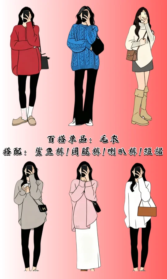 🔹 毛衣:秋冬百搭王,风格切换自如 毛衣真的是秋冬“万能钥匙”!
