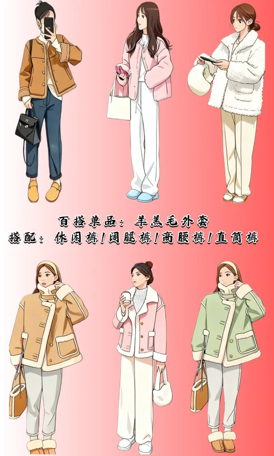 🔹 羊羔毛外套:软乎乎保暖王,甜酷风格都能hold