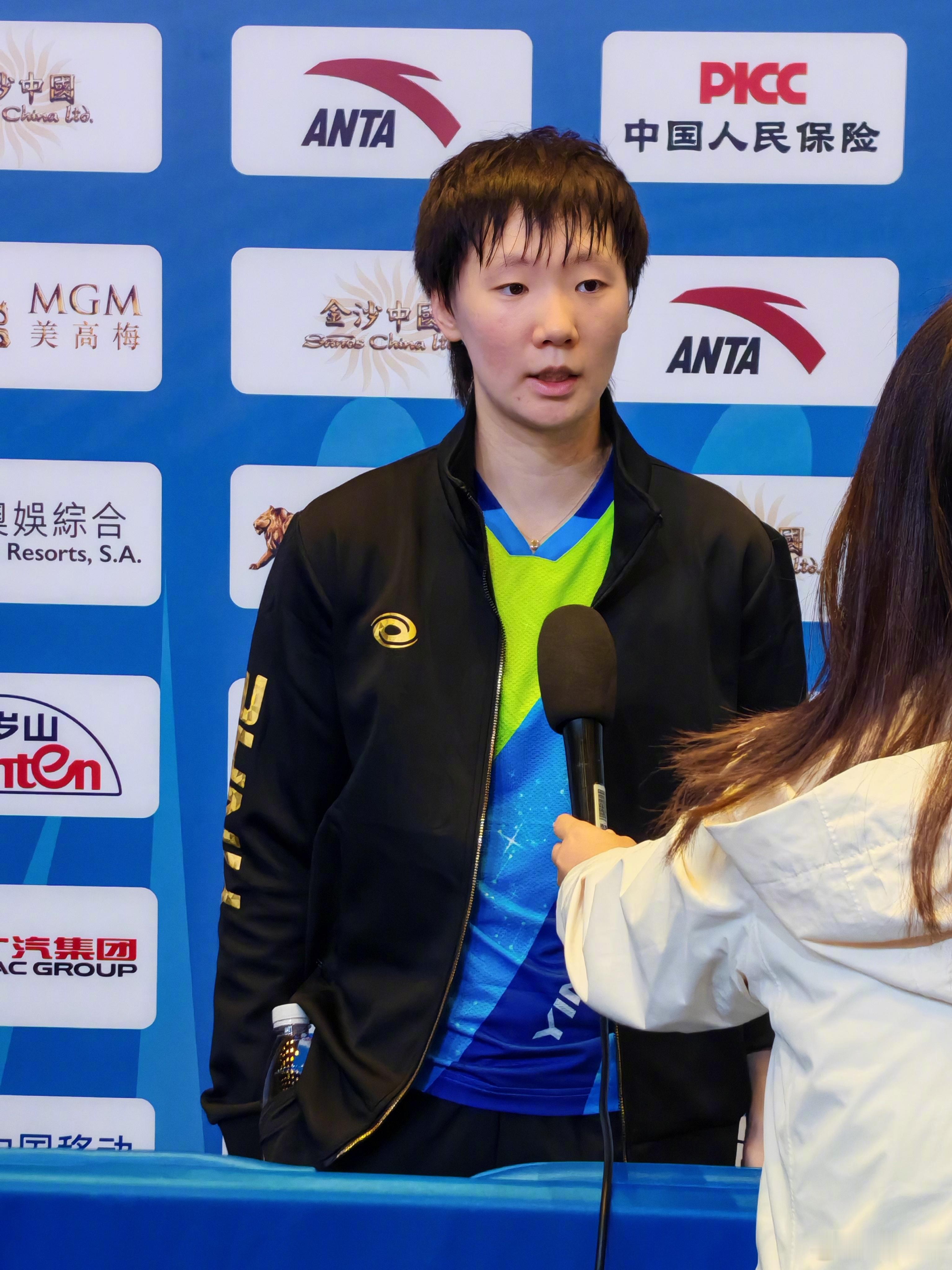 女单1/4决赛后,王曼昱在混采区接受媒体采访!