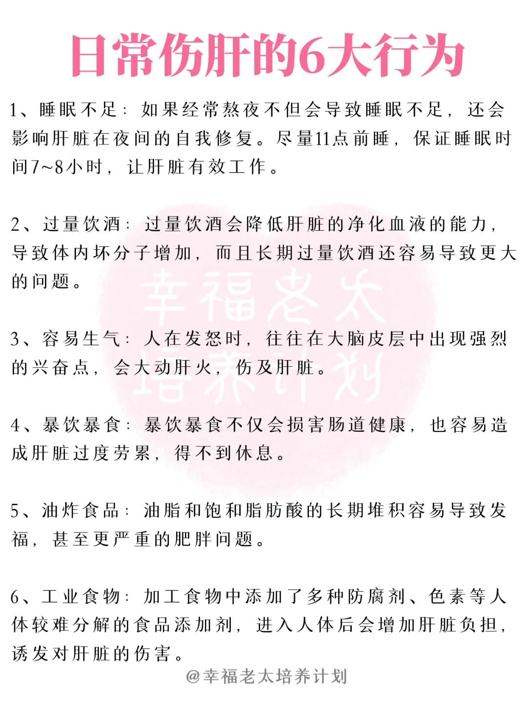 1️⃣睡眠不足:如果经常熬夜不但会导致睡眠不足,还会影响肝脏在夜间的自我修复。尽量11点前睡,保证睡眠时间7~8小时,让肝脏有效工作。