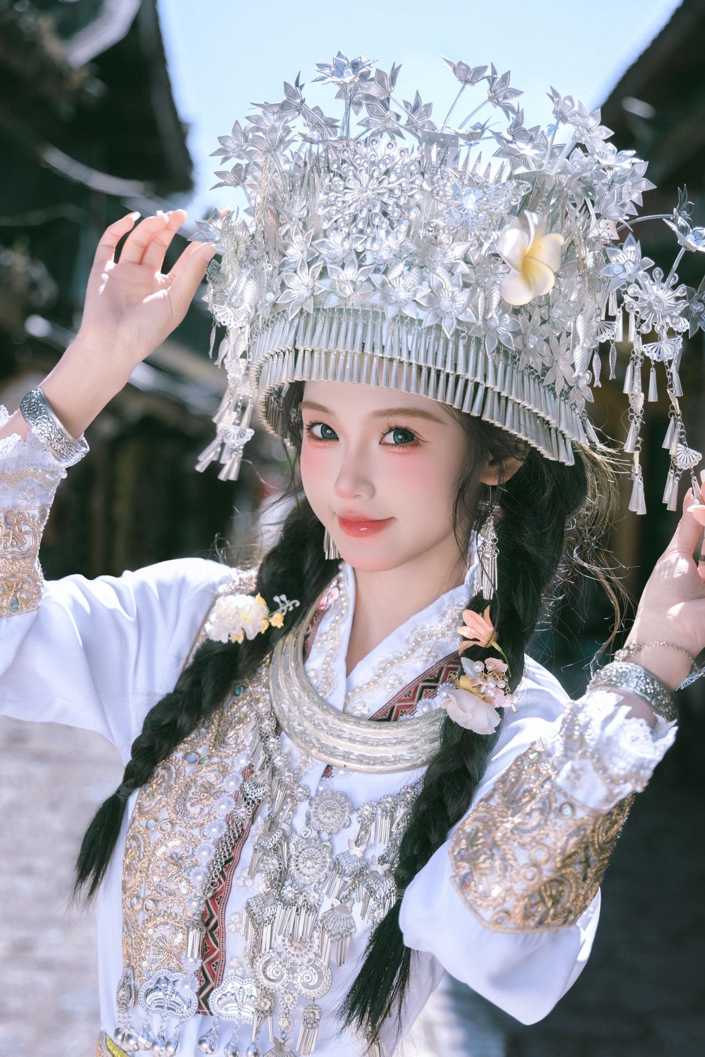 在束河古镇拍到了本命苗疆甜妹🥳顺着银铃声来我