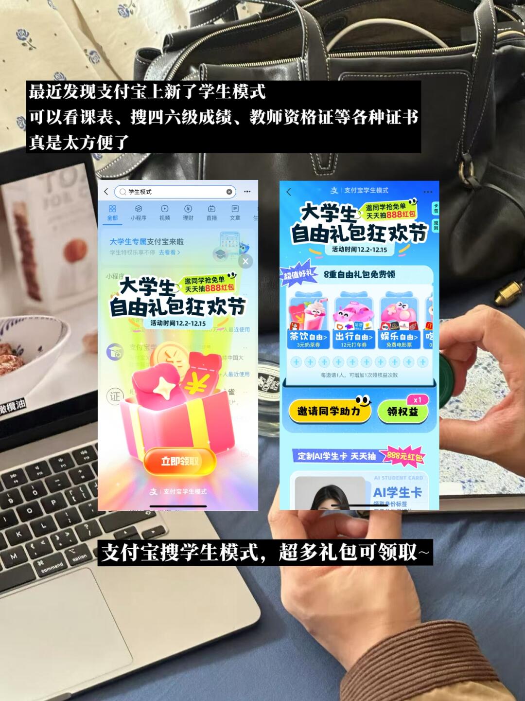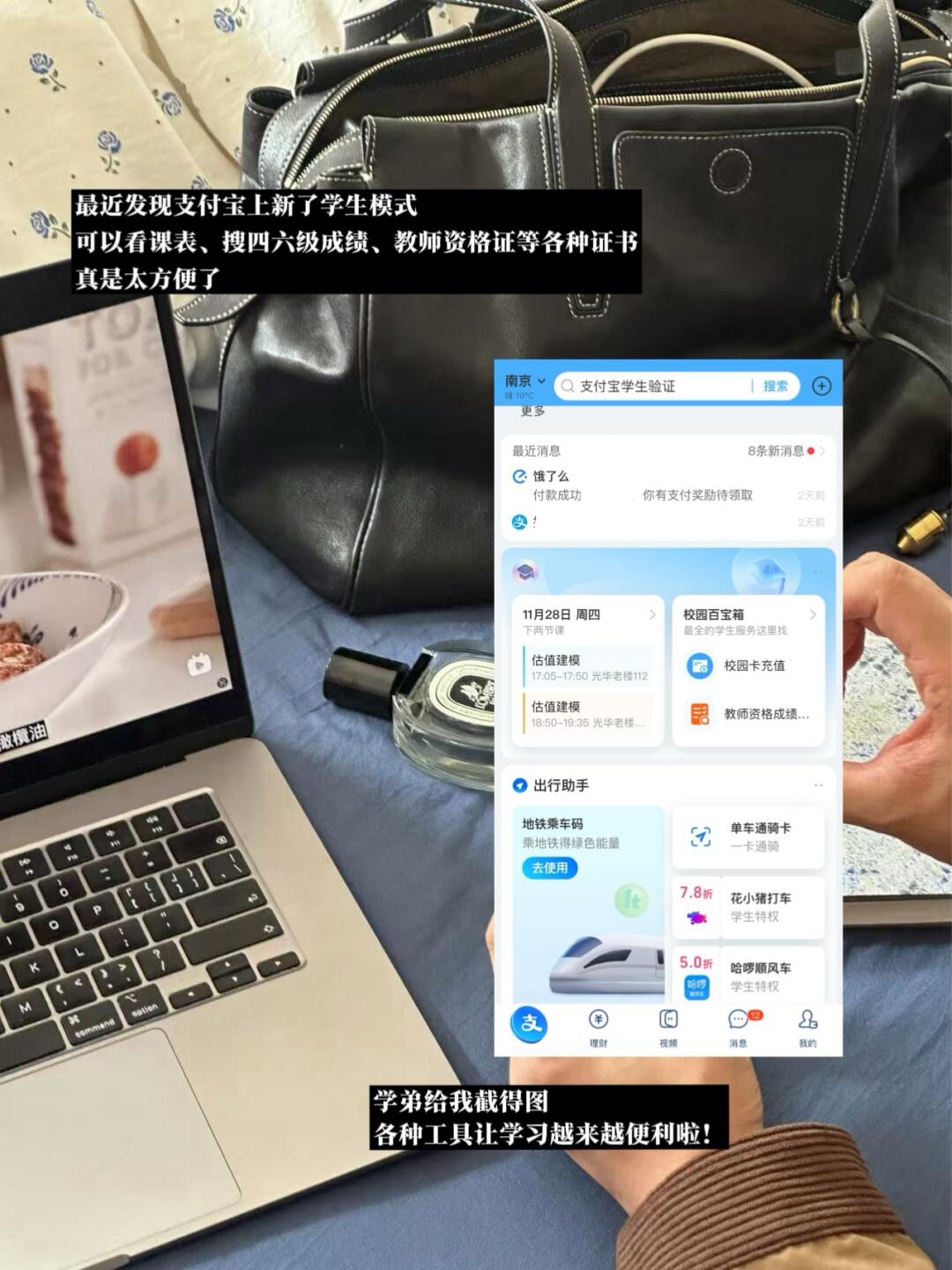 我大学自学时发现,用各种APP反而降低效率,现在支付宝学生模式功能很强大,直接一个支付宝百宝箱就把很多学习工具装进去,对学习效率带来巨大提升