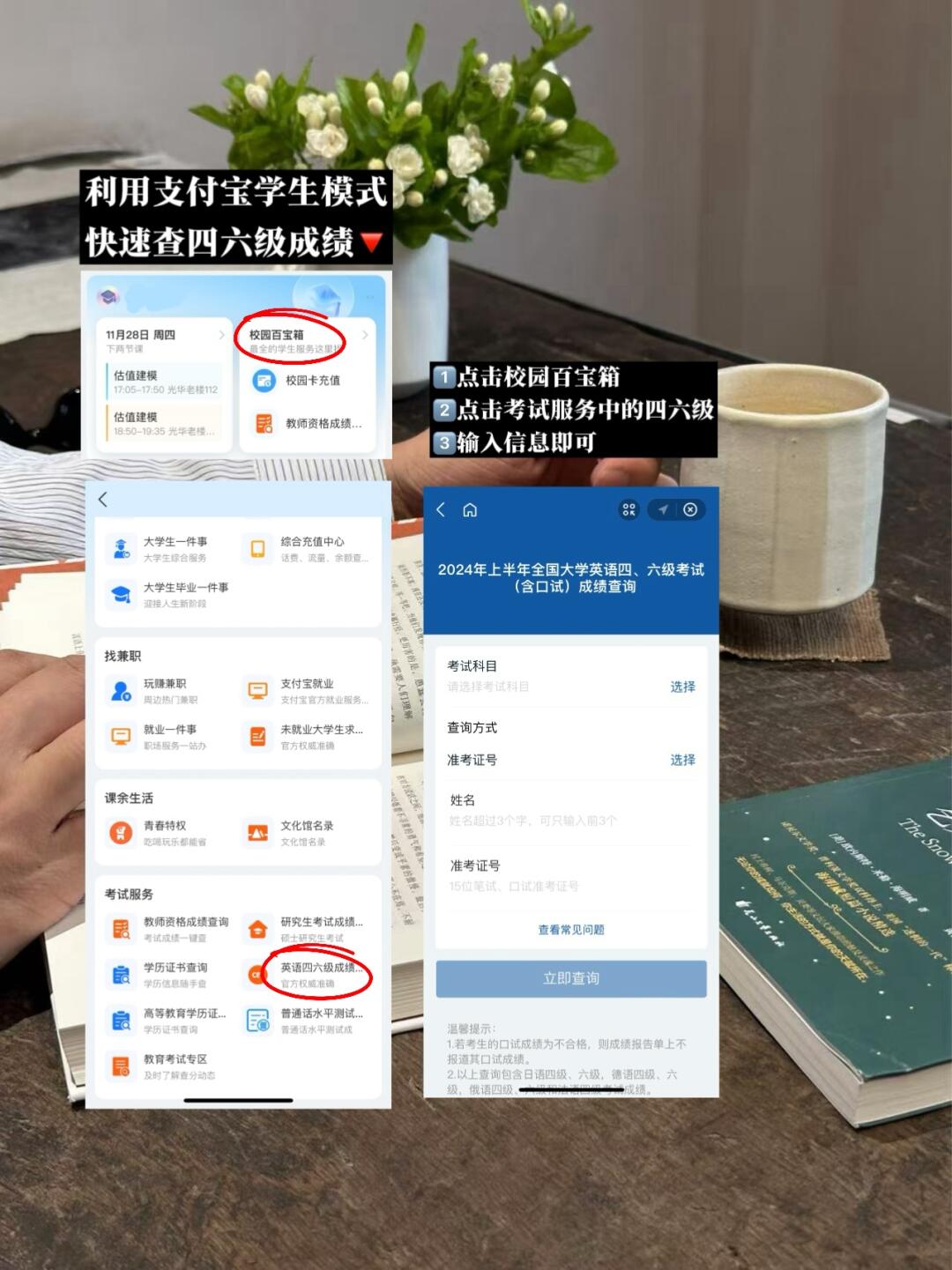 ▪️最近发现支付宝上新了专为大学生打造的学生模式,之前查四六级我都是时刻盯着,现在直接在支付宝里就能查分数,最近四六级考试快开始了,建议大家用起来🎧