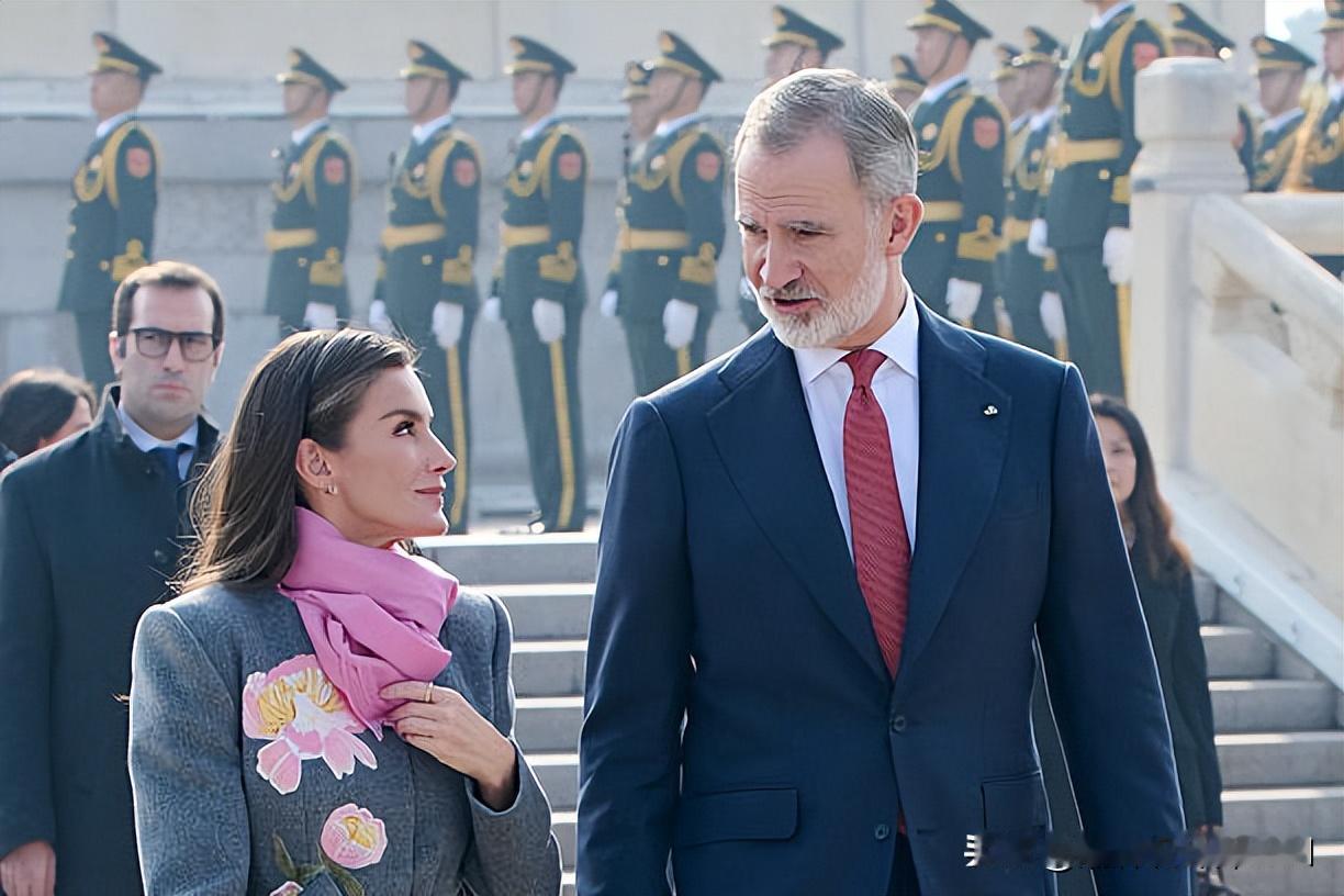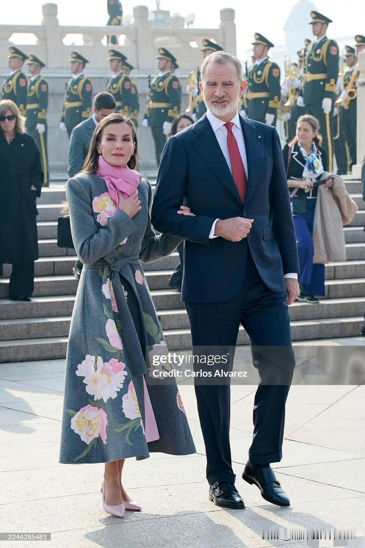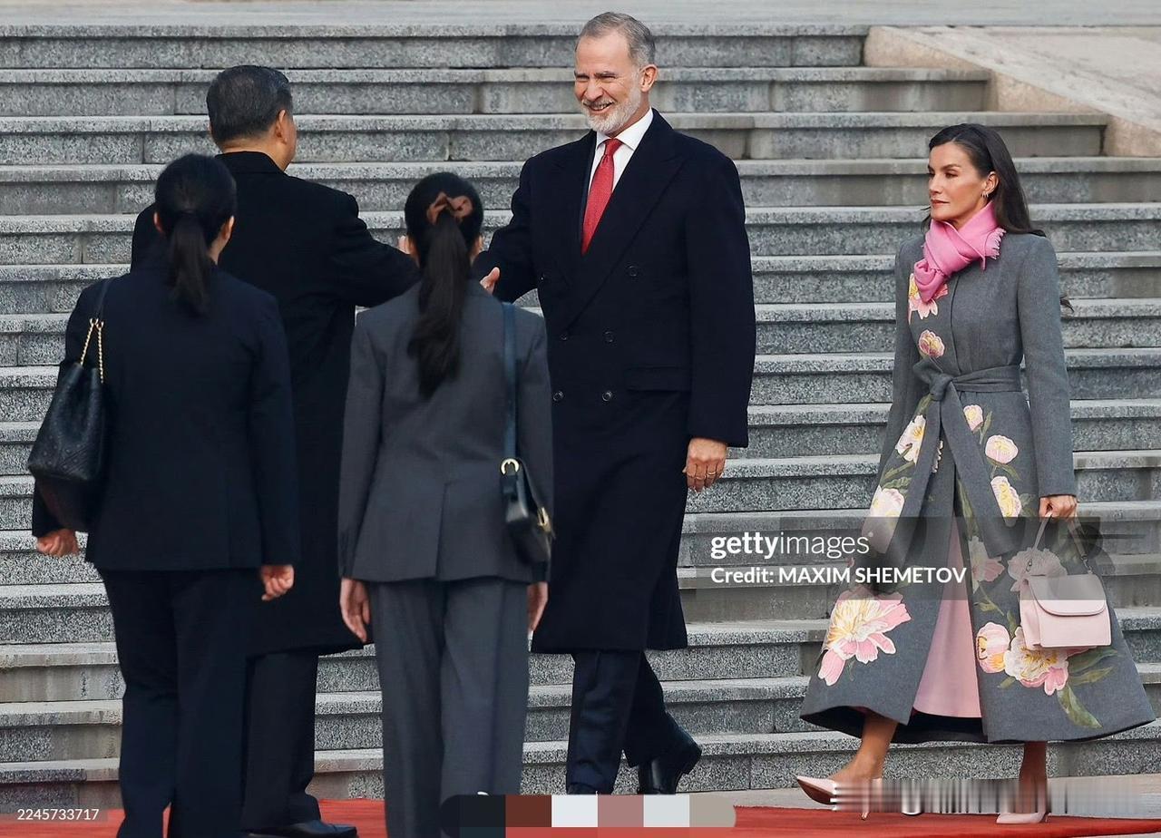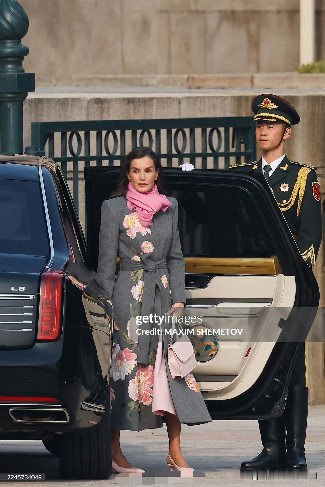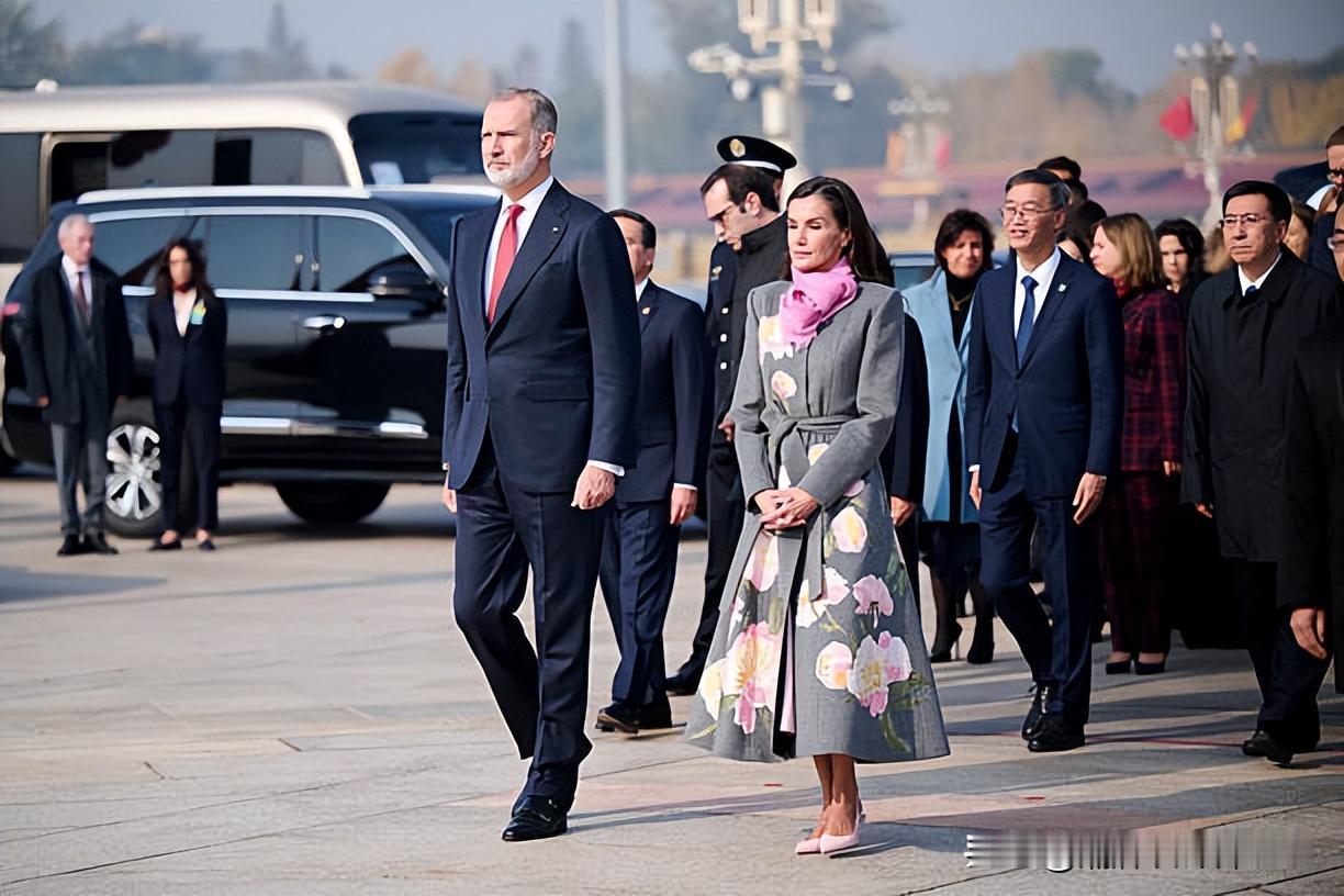 莱后在天安门广场的新中式着装,好讲究色彩搭配啊!端庄大气,高雅有范,完美彰显出一国之后的风范~ 近日,西班牙国王访问中国,特意携莱蒂齐亚王后向人民英雄纪念碑敬献花圈!讲真,不愧是“欧洲最美王后”,虽已年过半百,但一袭简约大气的灰色印牡丹花大衣,配上淡粉色羊毛围巾和长裙,却展现出了典雅不失时尚的风范! 配饰上,莱后也没有选择戴很复杂奢华的款式,虽只是一对素雅精致的银色耳环,却好衬她的气质!脚踩裸粉色尖头小高跟,走起路来高雅有范,仪态气质太出众!而这样的莱后,真的好美!