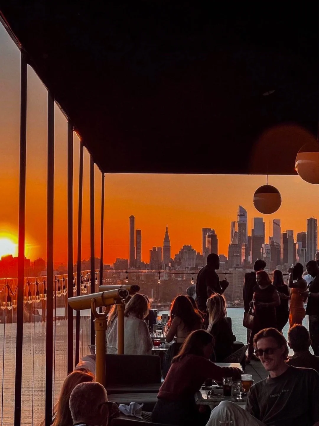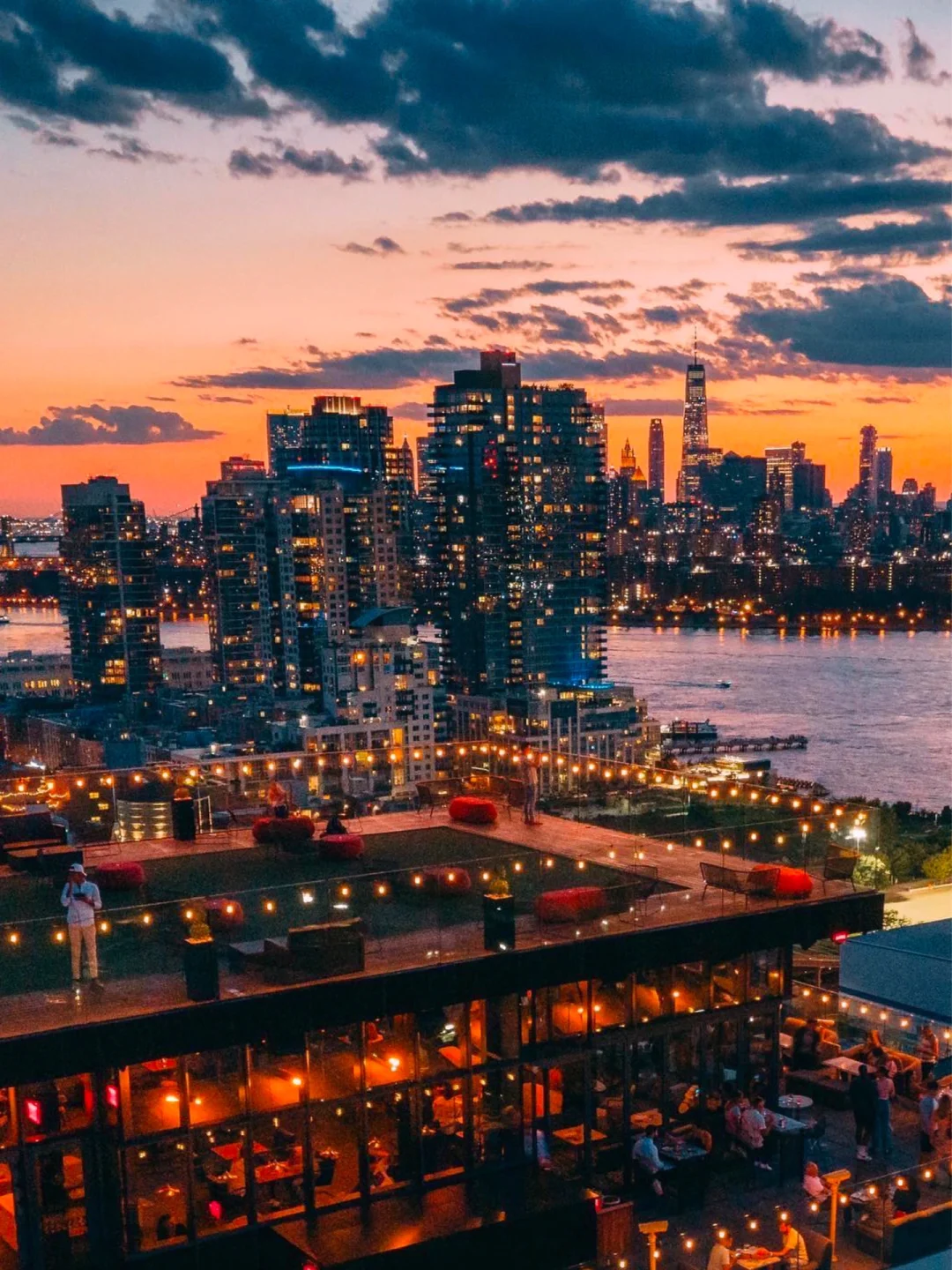 今天这家酒吧「Westlight 」位于 22 楼的屋顶酒吧,位于威廉谷 (William Vale) 顶上,可以360 度欣赏纽约市的全景。因为附近没有高楼遮蔽,能轻易地看到曼哈顿下城的华尔街高楼、世贸中心以及威廉斯堡大桥~