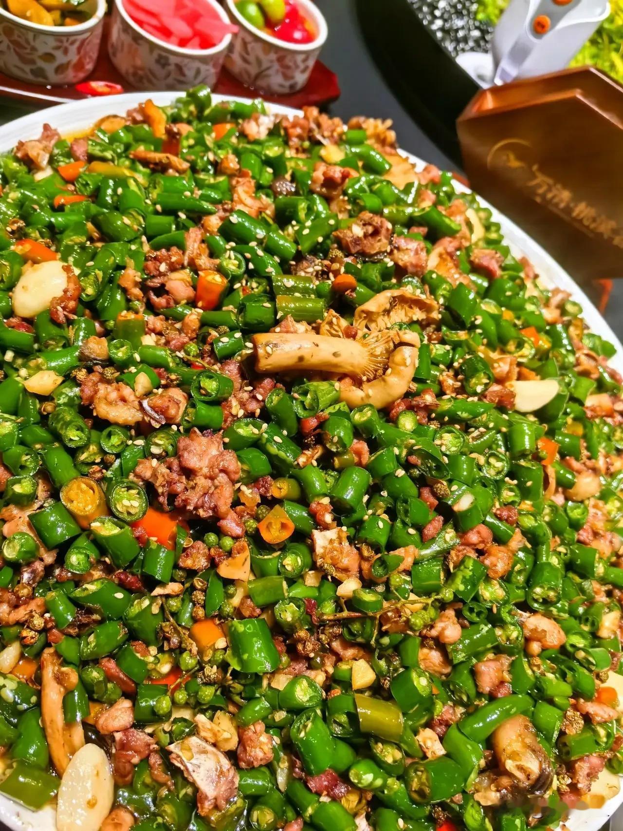 鲍鱼烧鸡,姜丝蛙,山药焖花胶,酸汤海鲜烩饭,辣脑花,红油抄手,虾仁粉丝煲,炸排骨
