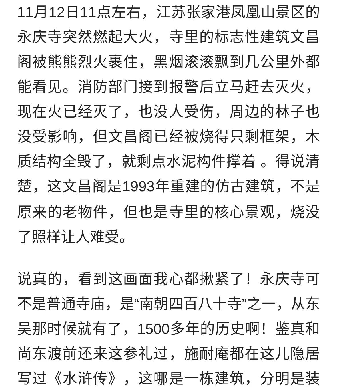 江苏一座历经1500年风霜的古刹突发火情,标志性楼阁被熊熊烈火吞噬。火光熄灭后,楼阁已成断壁残垣,网友痛心疾呼:火灭了,那份沉淀千年的历史厚重感,也跟着没了。