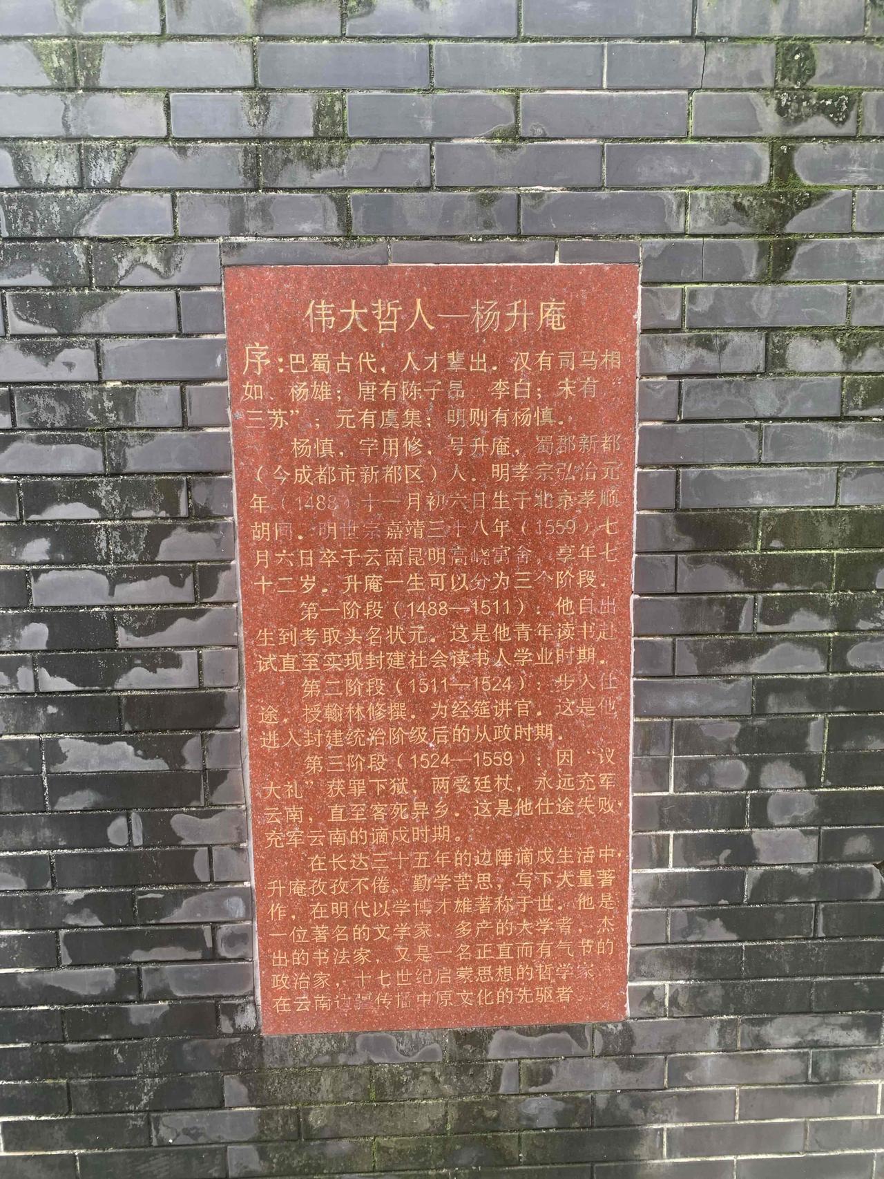杨升庵的家乡在成都新都的马家场,那里有公园可以喝茶,也有杨升庵雕塑,现在又修了一个新的纪念馆。