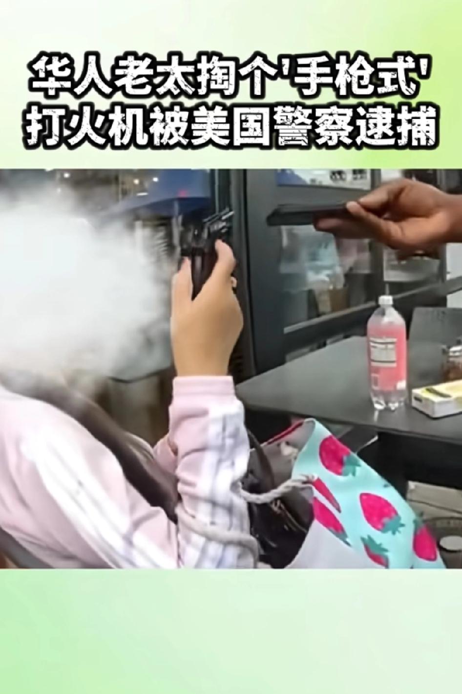 华人老太掏个手枪式打火机被美国警察逮捕,不会说英语聊了20分钟还掏出个手枪打火机… 这时候还拿假手枪出来真是活该,幸运的是警察没有清空弹夹。不懂英文,还嗲声嗲气的哼起小曲,哪位老干部家太太啊。发现撒娇在国外毫无用处,老外专治中国奇葩 以为在国内有人惯着她,结果在国外没人惯着,说的好听是华人,其实就是放弃中国国籍的美国人