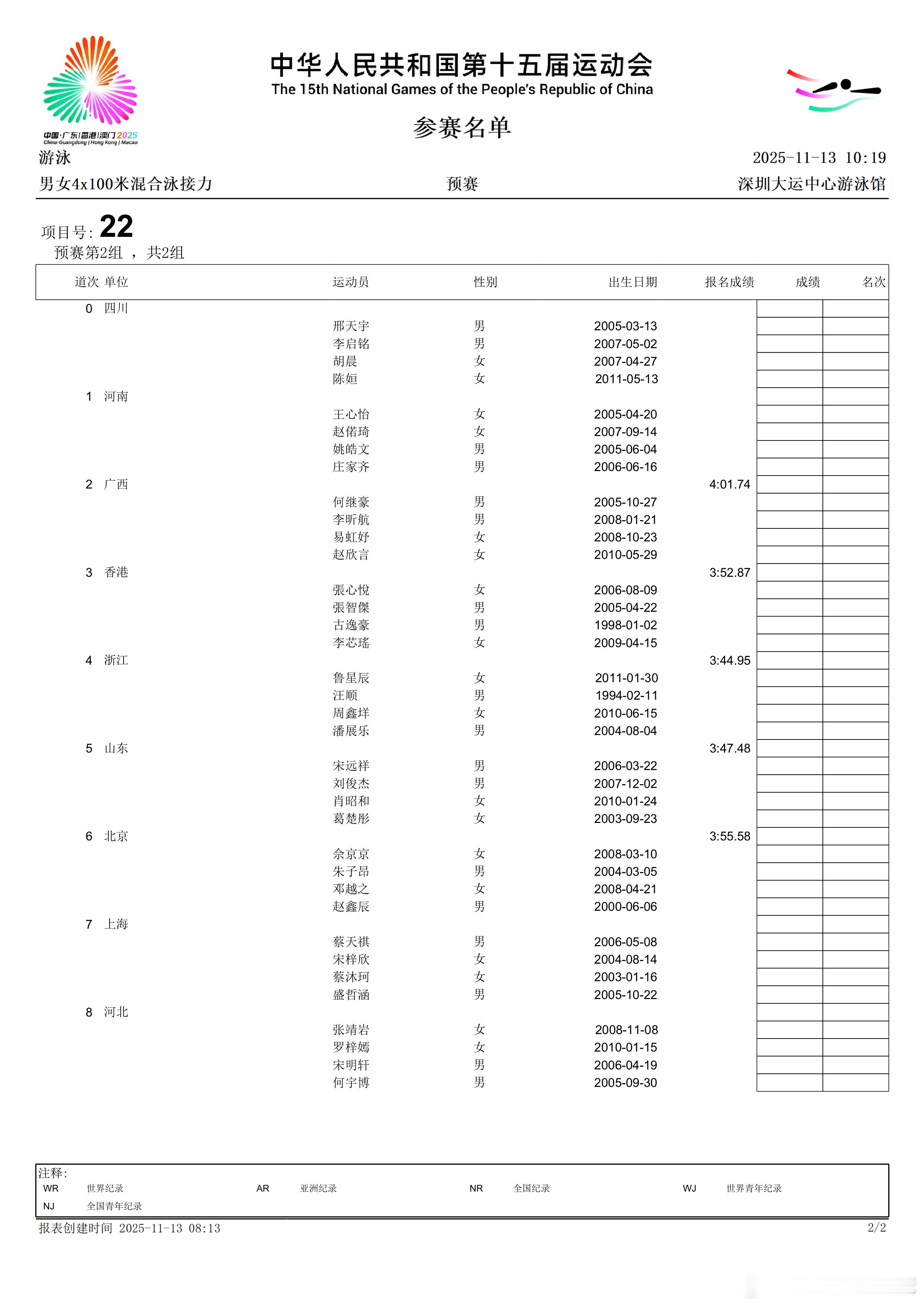 男女4x100米混合泳接力预赛阵容来啦 浙江:鲁星辰、汪顺、周鑫垟、潘展乐