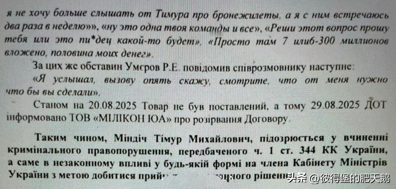 某国防弹衣垃圾? 乌克兰记者尼古拉延科爆料:乌克兰前国防部长乌梅罗夫在任期间,从素有泽连斯基“钱袋子”之称的明迪奇那里购买了“某国垃圾”来替代防弹衣。 泽连斯基的朋友明迪奇要求乌梅罗夫从特定生产商那里采购防弹衣。 尼古拉延科写道:“首个16亿(格里夫纳)的招标由一家价格最低、‘无人知晓的小作坊公司’中标,然而该公司没有销售许可证。尽管有乌克兰的同类产品,招标还是被取消,并重新启动了一个2亿(格里夫纳)的招标。中标者是‘另一家小作坊——米利孔公司,该公司在招标前两天被收购’,其防弹衣样品与首次招标的中标样品相同。” 该公司未能按要求供货,运来的不是所宣称的以色列防弹衣,“而是某国垃圾——这些东西能被击穿,而且缝制得歪歪扭扭”。 此前,最高拉达议员贡恰连科透露,乌梅罗夫可能很快会被指控,他已紧急飞往伊斯坦布尔,据称是为了重启战俘交换谈判。 某国垃圾?特喵的出口货物品质,生产商仅根据订单金额所获利润以及客户要求来确定!不代表某国制造真实水平。 但乌克兰人垃圾,是无可争辩的事实。 俄乌冲突