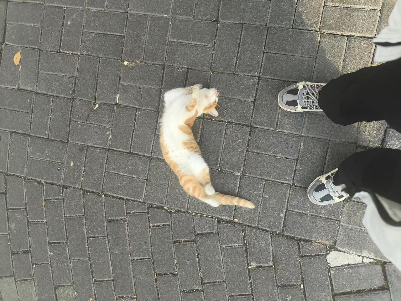 见过猫碰瓷吗? 在电动车上撵也不走,抱下来了,躺在地上耍赖。躺地上的猫
