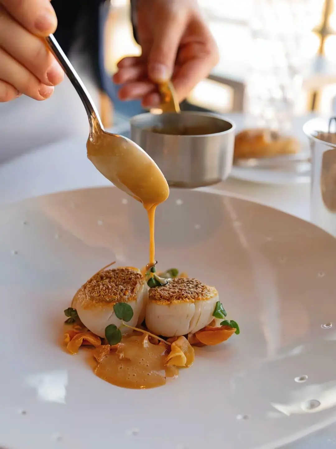 2️⃣Duck Press:这是一道复杂的料理,需要将整只鸭经过特别的压制技法,制作成浓郁的鸭肉汤,再与鸭肉一起装盘