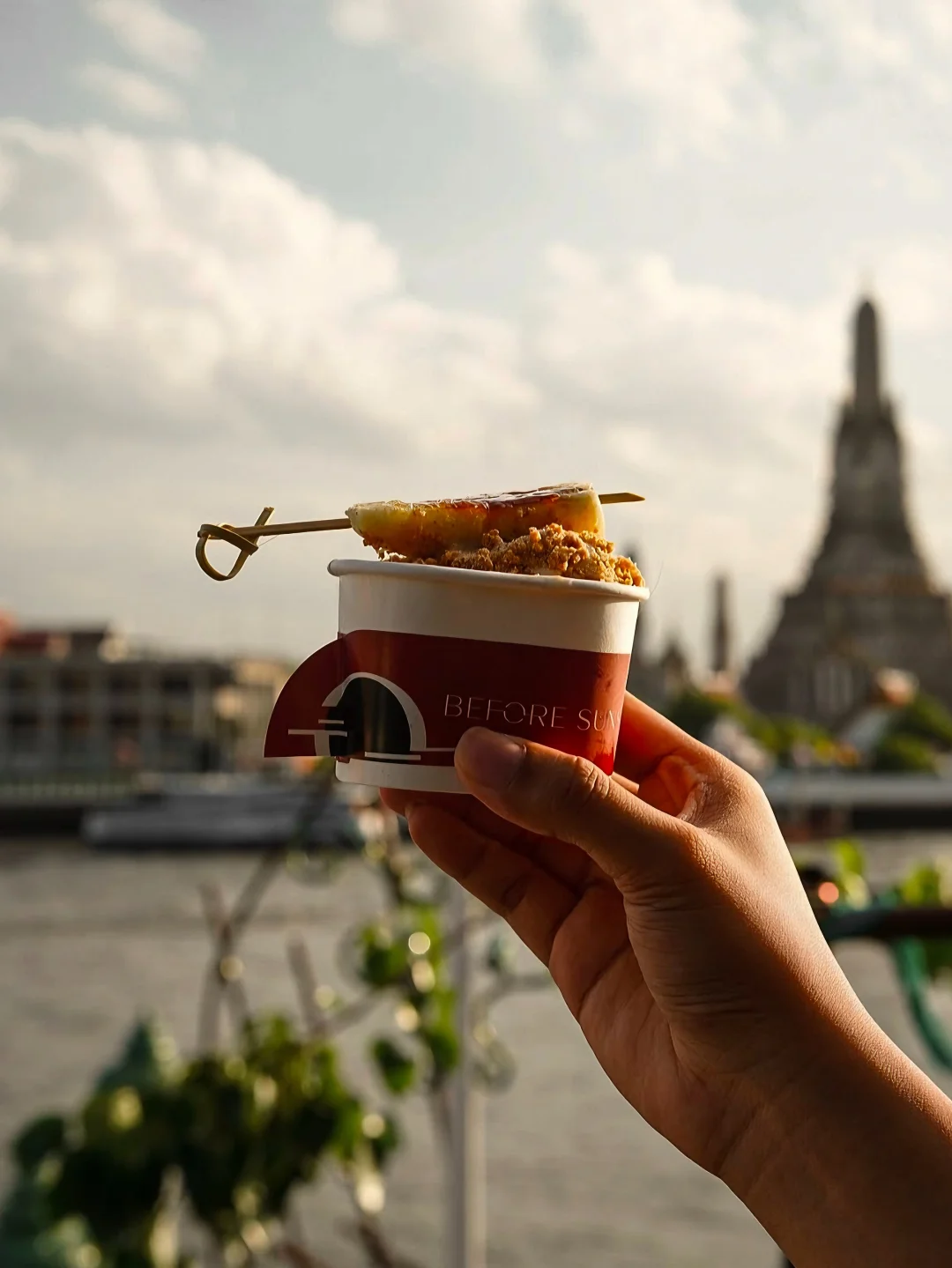 谁懂30r就可以get的快乐!这家位于曼谷的冰淇淋店我愿称之为最美冰淇淋店之一~可以欣赏到超美郑王庙的景观,夕阳的时候更是浪漫🌅~\n\t\n🍦店名:Before Sunset\n💰人均:100-200泰铢\n\t\n📷拍照tips:\n日落时分来最美: 因为店名是\"Before Sunset\",很多人都会选择在日落时分来这里打卡。特别是在店内的窗边可以直接看到郑王庙,可以说绝对是曼谷最佳机位之一!\n\t\n🔹必试冰淇淋:\n1️⃣【Sweet Sunburn】:\n店里的招牌,是\n香蕉冰淇淋配上香蕉布丁碎和小薄饼干,120泰铢就可以get!可以说是来店里比品尝的一款了\n\t\n2️⃣【Pinkberry on Top】:\n酸奶冰淇淋配上草莓酱和碎屑,喜欢喝酸奶的朋友们不要错过这一款,味道酸酸甜甜的,感觉十分的开胃,120泰铢就能get~\n\t\n3️⃣【Coconut Affogato】:\n香草口味的冰淇淋配上椰子和咖啡,和其他两款不同的是,这个冰淇淋放在小杯子里,颜值很高,也是店内非常热门的一款,拿着它可以和郑王庙一起拍照,美食图get~\n\t\n4️⃣【Creamcheese Lemon Pie】:\n奶油芝士冰淇淋配咸焦糖,如果喜欢吃甜咸中和口味的朋友一定不要错过这一款~\n\t\n5️⃣【Mango Sunrise】:\n这个冰淇淋的颜值也很高!它放在一个透明的被子里,还有小花朵点缀。味道是甜甜的芒果味和椰子口味,个人很喜欢这款!\n——\n为大家在种草一家颜值和位置双双在线的【❤️Airbnb】民宿,去哪里都很方便~\n\t\n🏠民宿名:APT476 | 2nd Fl. | 2 BDR | 1min walk to Subway\n📍位置:泰国, 巴吞旺老城区,距离唐人街700m\n💰性价比:1晚起住,每晚1200+RMB,可以住4人,人均300+\n\t\n✨民宿亮点:\n▪ 民宿有2个房间,一间房是双人床,另一个房间是上下铺单人床\n▪工作人员十分热情,会帮忙搬行李上二楼;民宿里还可以做SPA,营业到晚上10点\n▪ Wi-Fi、吹风机、熨斗、电视、洗护用品、电视、免费停车位等都配备,厨房可以做饭\n\t\n📷图片来自网络&Airbnb民宿,图侵删\n\t\n