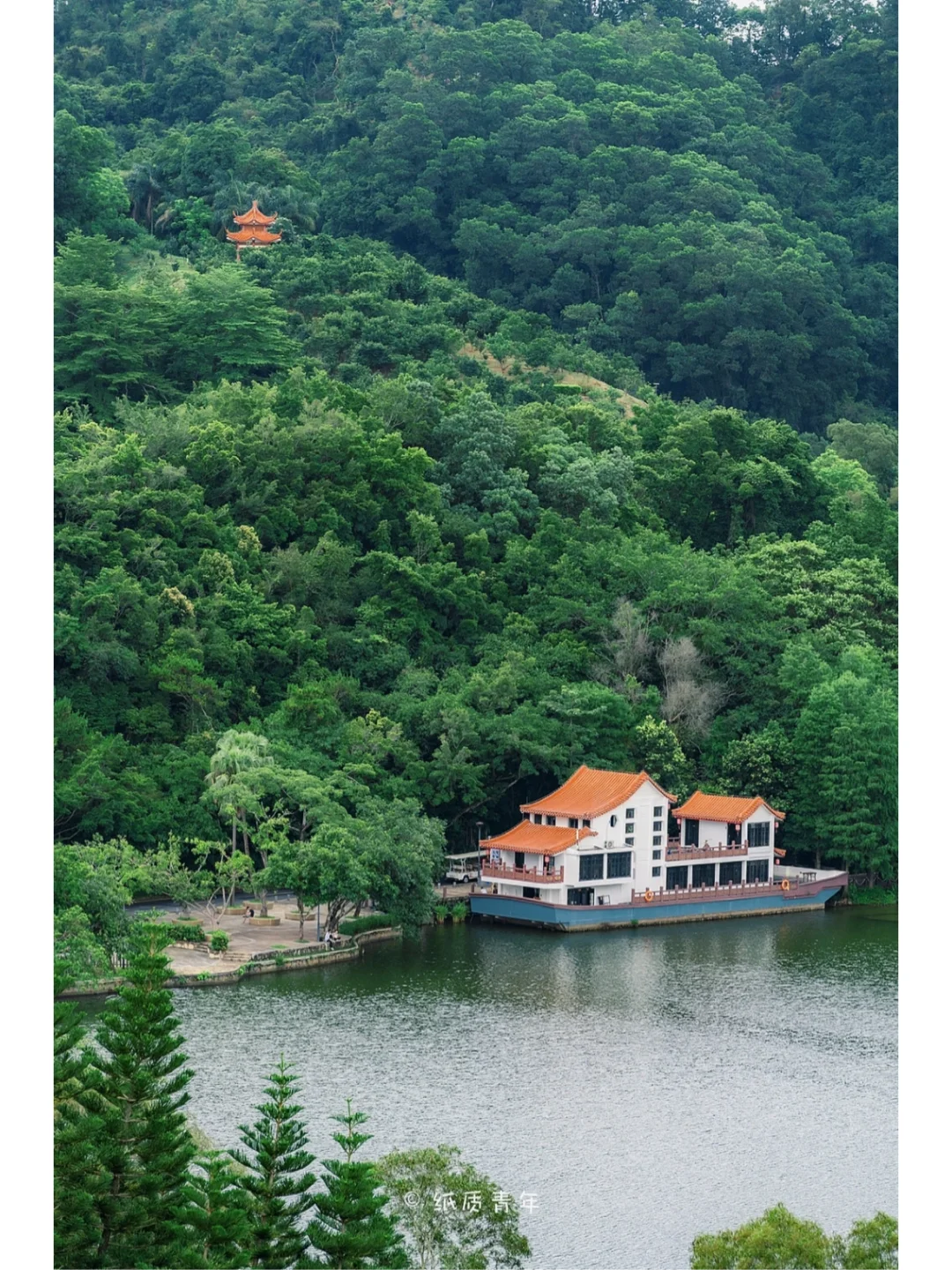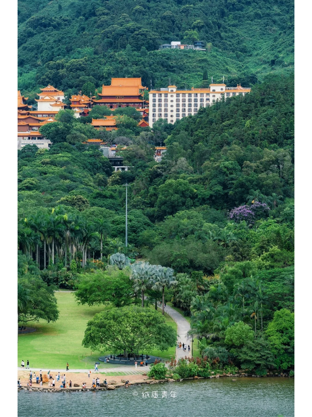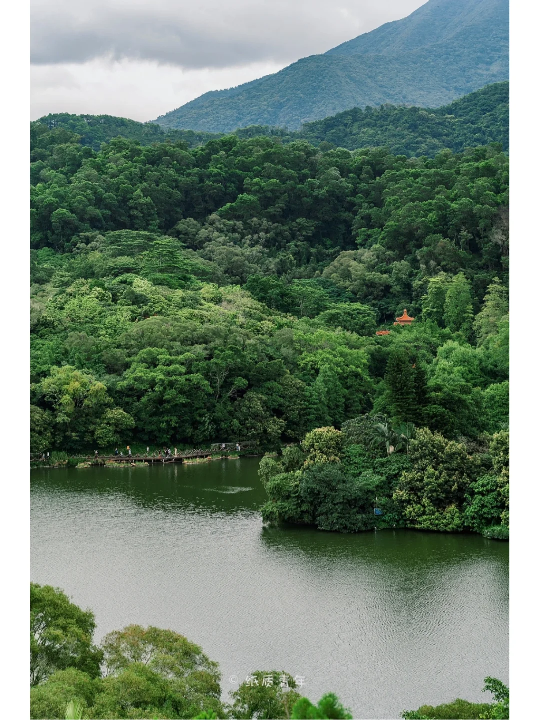 ▪️沿着马路走,到达揽胜亭和听涛阁的位置,以上大部分照片都是这个机位拍摄的。可以一览整个仙湖植物园,对面就是弘法寺和本焕塔,下面是仙湖。