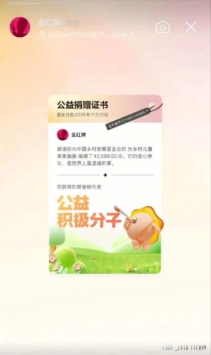 好家伙,全红婵直播首秀太暖了!43598元礼物全捐给乡村儿童。 这场直播来得突然。11月12日晚九点多,她在沉寂4年的社交账号上毫无预兆开播。一开始是队友陈艺文、陈艾森在直播,粉丝们在评论区刷屏喊全红婵,陈艾森就跑去宿舍把她叫来了。 直播间人气瞬间爆炸。在线人数秒破10万,最高时维持在10万以上。有报道称直播1小时吸引了超过900万人观看。 婵宝在宿舍里边吃饼干边聊天,和队友们有说有笑。看到满屏的礼物特效她有点懵,一直喊“哥哥姐姐们不要刷了”,还手忙脚乱地找关闭打赏的按钮。 十点整,铃声一响直播准时结束,估计是二沙训练中心的熄灯点名时间到了。 最戳心的是后续。这场直播税后收入43598.6元,她一分不留全捐给了中国乡村发展基金会,用于帮助乡村儿童,并且晒出了捐款证明。 这姑娘真是实力和善良都在线。自己比赛完了还不忘呼吁大家关注全运会其他项目。 你们被婵宝圈粉了吗。