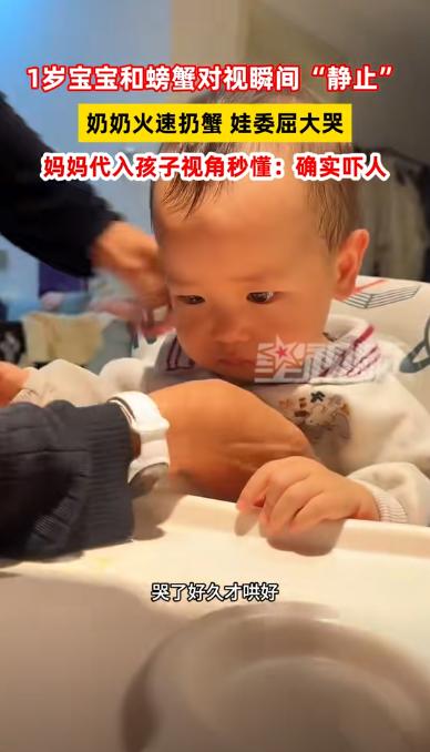 太可怕了!安徽一女子把煮熟螃蟹给宝宝玩,没想到宝宝一直盯着螃蟹看,半天都没有动过,女子就好奇就看了一眼宝宝发现宝宝这眼睛在不停颤抖,接下来发生的事情让女子感到后怕。   本来是个挺平静的夜晚,孙女士(化名)想着让宝宝多接触点新鲜东西,刚好厨房有只凉透的熟螃蟹,就顺手拿过来放在宝宝能看到的桌边,想让孩子 “看看、摸摸”,认识下这种海鲜。   宝宝盯着螃蟹看了好一会儿,身体一动不动,眼神却特别专注,孙女士觉得挺有意思,凑过去想看看孩子的反应,这一看却吓了她一跳,孩子的眼睛在不停颤抖,像是盯着什么东西却又不受控制,脸上没笑也没哭,就那么愣愣的,场面看着特别紧张。   正在旁边忙活的奶奶看到这情景,反应特别快,二话不说就把螃蟹扔到一边,赶紧抱起宝宝轻轻拍着安抚,没想到刚离开螃蟹的视线,宝宝突然 “哇” 的一声大哭起来,声音尖利得很。   孙女士和奶奶又是摇晃又是喂奶,折腾了好几分钟,孩子的情绪才慢慢平复下来。   后来孙女士回想起来,有几个细节其实早该注意,那只熟螃蟹外壳硬邦邦的,腿脚又细又长,不管是看着还是摸着手感都很 “陌生”,小宝宝的神经系统和感知能力还在发育,碰到这种形状奇怪、纹理突出的东西,很容易有强烈反应,从盯着看不动到肌肉轻微颤动都有可能。   而且就算海鲜煮熟了,也有少数宝宝可能会过敏,虽然过敏常见的是起疹子、呕吐或者呼吸急促,眼睛颤抖不算典型症状,但只要有异常就不能忽视。   更别说把食物当玩具本身就有风险,万一螃蟹还有点温度可能烫伤,硬壳边缘也可能划伤孩子,碎渣子要是被孩子抓着放进嘴里,还可能呛到气管。   经过这事儿,孙女士也明白了以后,要是想让孩子认识食物,不如买些安全的模型,或者选些软乎乎、没风险的替代品。   最重要的是,要是孩子出现眼睛一直抖、意识不清楚、手脚抽动或者呼吸不对劲的情况,别犹豫,立马送医院,查查是不是神经、眼睛有问题,或者是不是过敏了。   孙女士说,这次真是吓得不轻,也让她明白,照顾小宝宝就得格外谨慎,得尊重孩子的感受,不能凭着自己的好奇随便给孩子接触东西。   那只惹出小插曲的螃蟹虽然没造成大麻烦,却给所有家长提了个醒,对小宝宝来说,世界上到处都是他们不熟悉的东西,大人的一个小举动,都可能影响到孩子的安全和情绪。   比起一时的好奇,细心、谨慎,还有发现不对劲时及时应对,才是更重要的。   对此,你还有什么看法呢?    (信息来源 :中国日报 )
