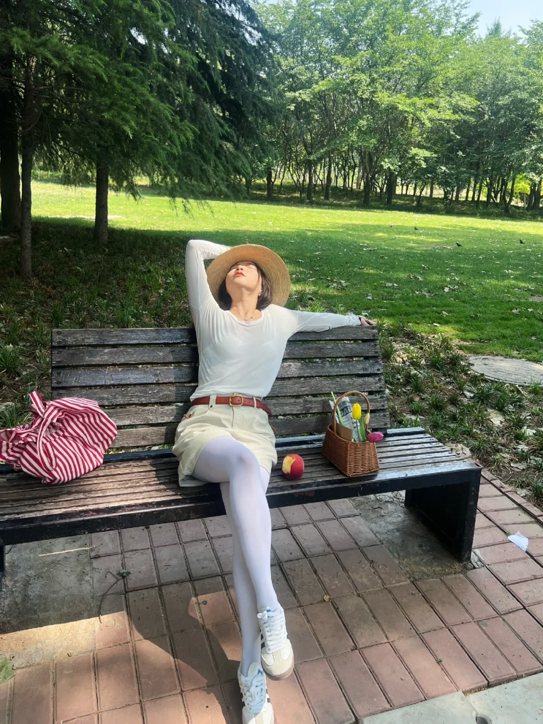 穿着白袜🧦来公园⛲️20分钟充电成功🔋🍃
