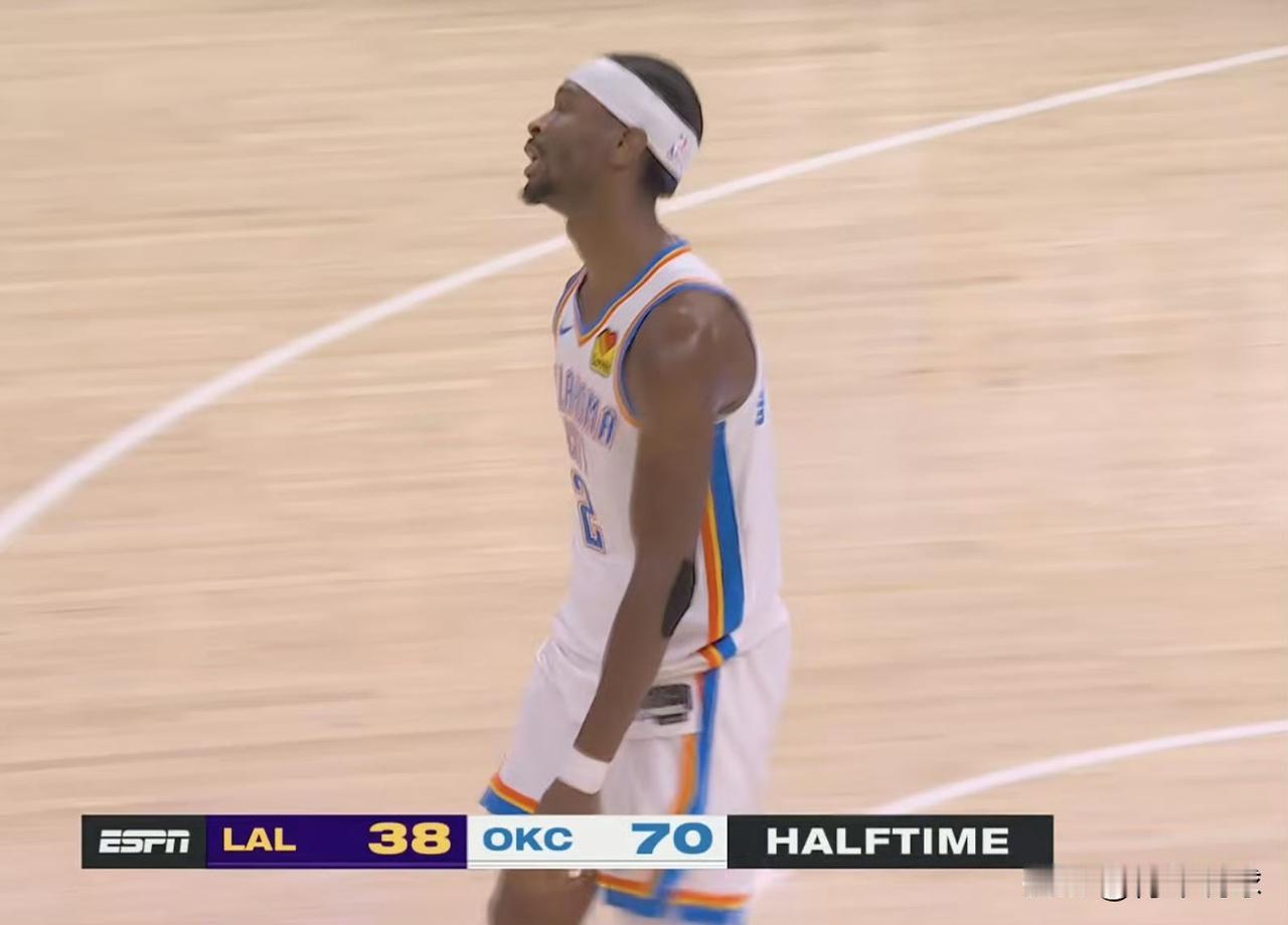 还不如勇士队呢! 今天湖人对阵雷霆的比赛。半场战罢,湖人以38-70落后多达32分之多,真是令人瞠目结舌。要知道,昨天勇士半场落后19分遭全网嘲讽,而湖人还不如勇士呢,雷霆还是背靠背作战,真的太丢人了。 本场比赛,湖人被雷霆全方面碾压,失误数11-1,抢断数1-8,盖帽数0-4,内线得分8-28,助攻数6-16。雷霆不愧是卫冕冠军,这下湖人该认识到了与顶尖球队的实力差距有多么巨大,而不是盲目自信。