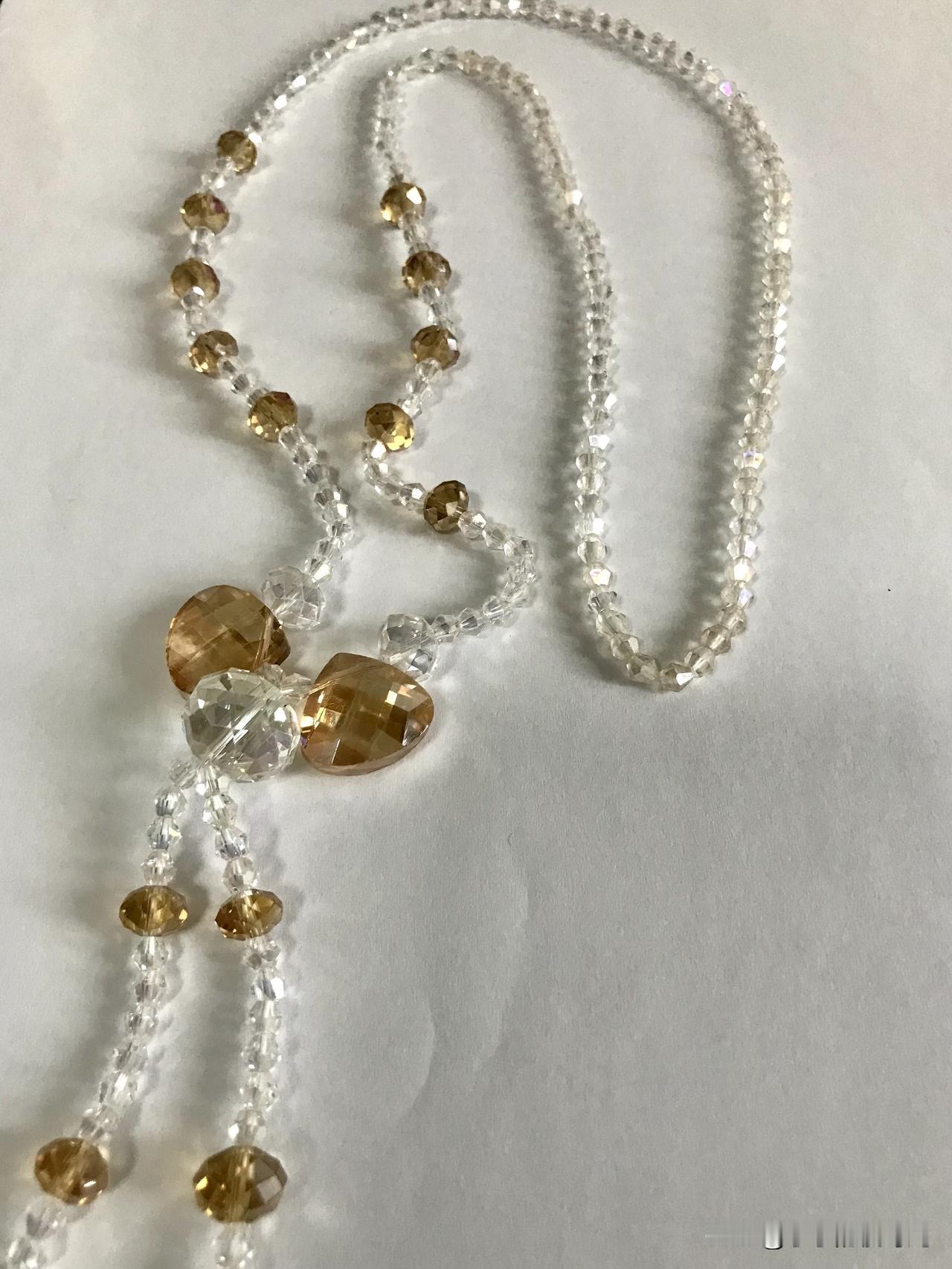 很早很早以前买的水晶项链和水晶手链(也不知道材质真假,反正是买来戴着玩儿的,不指望它多珍贵),因为管理不善,多年前线就断了。 当时就随手用身边的现成材料,胡乱串起来。 淡黄色的水晶项链比较长,很漂亮的款式,用的是透明的胶线来串。 而粉色手链,用了黑色的弹力线来串。 我知道这两种线都不太合适,但当时身边只有这些材料,就将就了。 串好了之后,水晶项链外观看上去和原来差不多,线和珠子的颜色也匹配,但质感大不如从前。 因为胶线有点硬,使得项链也有硬邦邦的感觉,时间一长,更是如此。(图一) 而手链呢,用弹力线本来很好,但粉色珠子,和黑色弹力线相配,很不协调。(图三) 所以项链和手链串好之后,我一次都没有再戴过,再加上,其实自己真正喜欢佩戴的是玉,比如玉手镯、玉挂件等等,时间一长,就把这两件水晶饰品给忘了。 前不久,朋友告诉我,她买了很多专门串项链、手链的各种线,比如弹力线、鱼线、璎珞线等等,有白色、红色、蓝色,欢迎我们找她要。 想到被我遗忘的项链和手链,于是,就向她要了白色的璎珞线,以及穿线用的细丝,本着“死马当活马医”的想法,今天开始动手重新串。 水晶项链有点长,怕串错了步骤,串之前还特意拍照,照着原来的样子串。 而手链呢,戴在手腕上貌似紧了一点,就从项链上取下了几颗透明珠子,按比例加在了手链里。 最后出来的成品怎么样呢? 水晶项链几乎和初买的时候一模一样,不是硬邦邦的了,而是柔软如初,恢复了原来的质感,柔顺地垂成一道光润的弧,在我指间微微地晃动。 而手链呢,因为换成与之相匹配的线,以及有新成员的加入,变得柔软而又舒适,长度也适中,恰似乐章里灵动的变奏,衬得粉色愈发娇嫩,环在腕上,是恰好的妥帖与舒适。 一次小小的改革,让被废弃的项链和手链重新焕发了新生,满满的成就感啊。 如果你有“废物”想“新用”,也可以试试哦。 欢迎关注@丁丁的慢时光 项链水晶 分享今日随笔? 聊聊今天的开心事[笑] 随手拍记录美好的点滴 随手拍原创图片分享 分享你的开心一刻