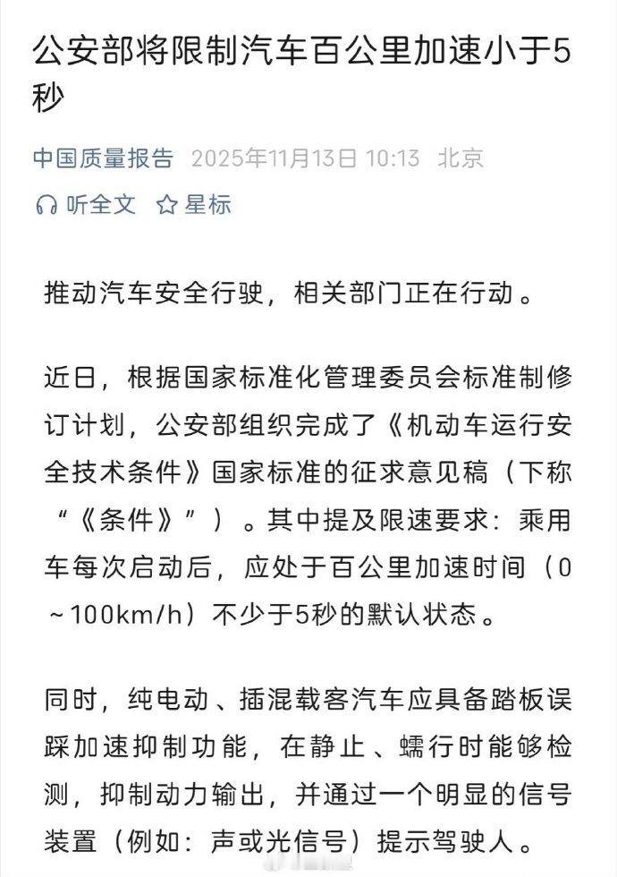 乘用车每次启动后应处于百公里加速< 5s 的状态,意思就每次上车想要高性能的车,还得手动切换一下?那么接下来,应该会有很多车出现一键运动按钮了。还好我是理想车主,可以设定一个任务大师,上车自动切换高性能模式。L 系列的朋友别担心,你的车百公里加速快不过 5s。