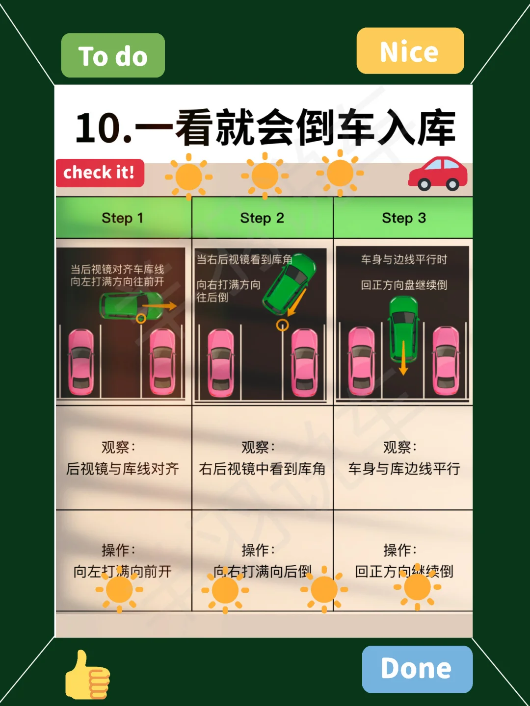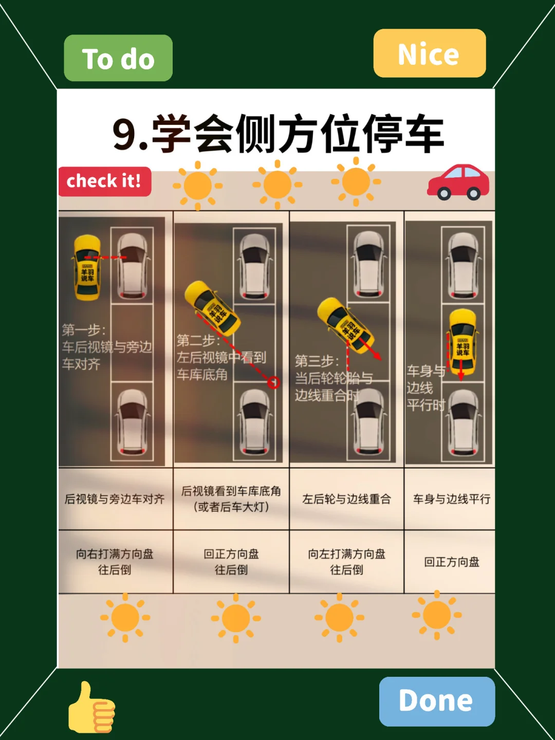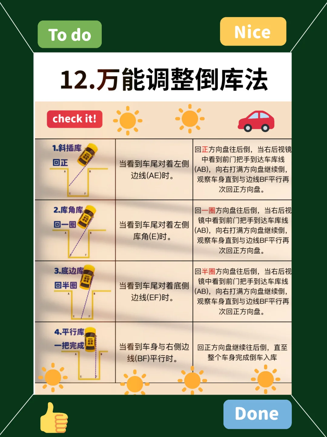 22、新手倒车,不要让人指挥左右,看后方距离除外,自己倒车,比别人指挥更好停。