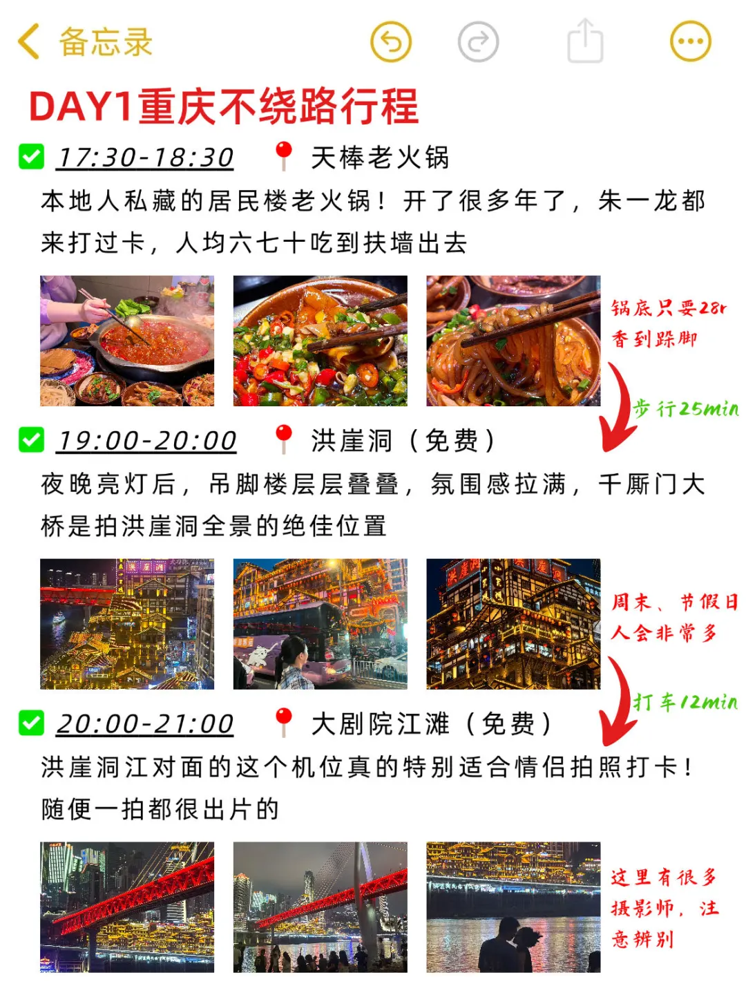 准备计划来重庆游玩的姐妹们👭不想自己做攻略的,就看看我花了一天时间熬夜总结的游玩攻略!涵盖了重庆注意事项、游玩路线、重庆美食!