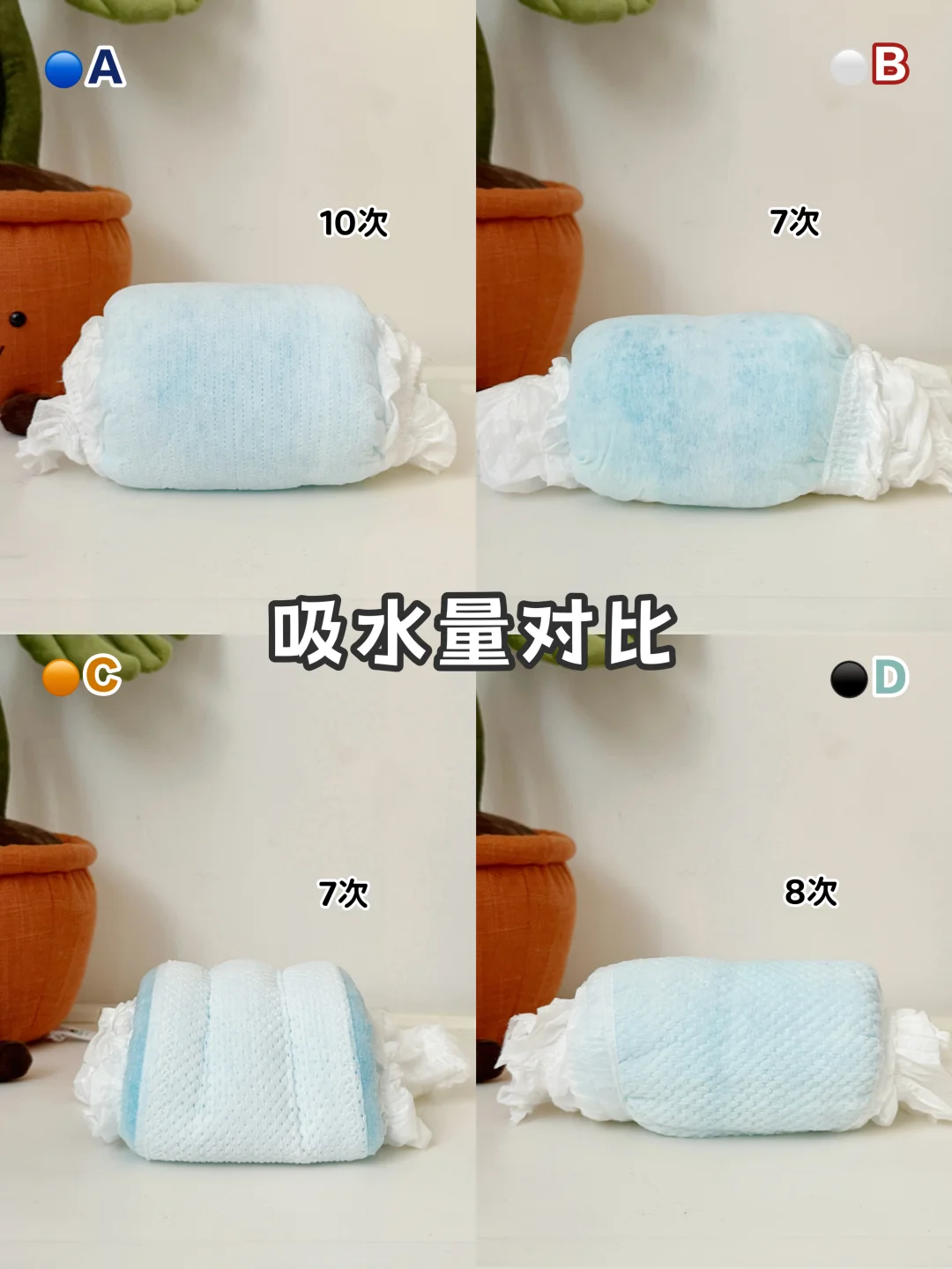 这个是双层的sap芯体,一片的吸量在8次左右,吸收速度尚可,也不反渗
