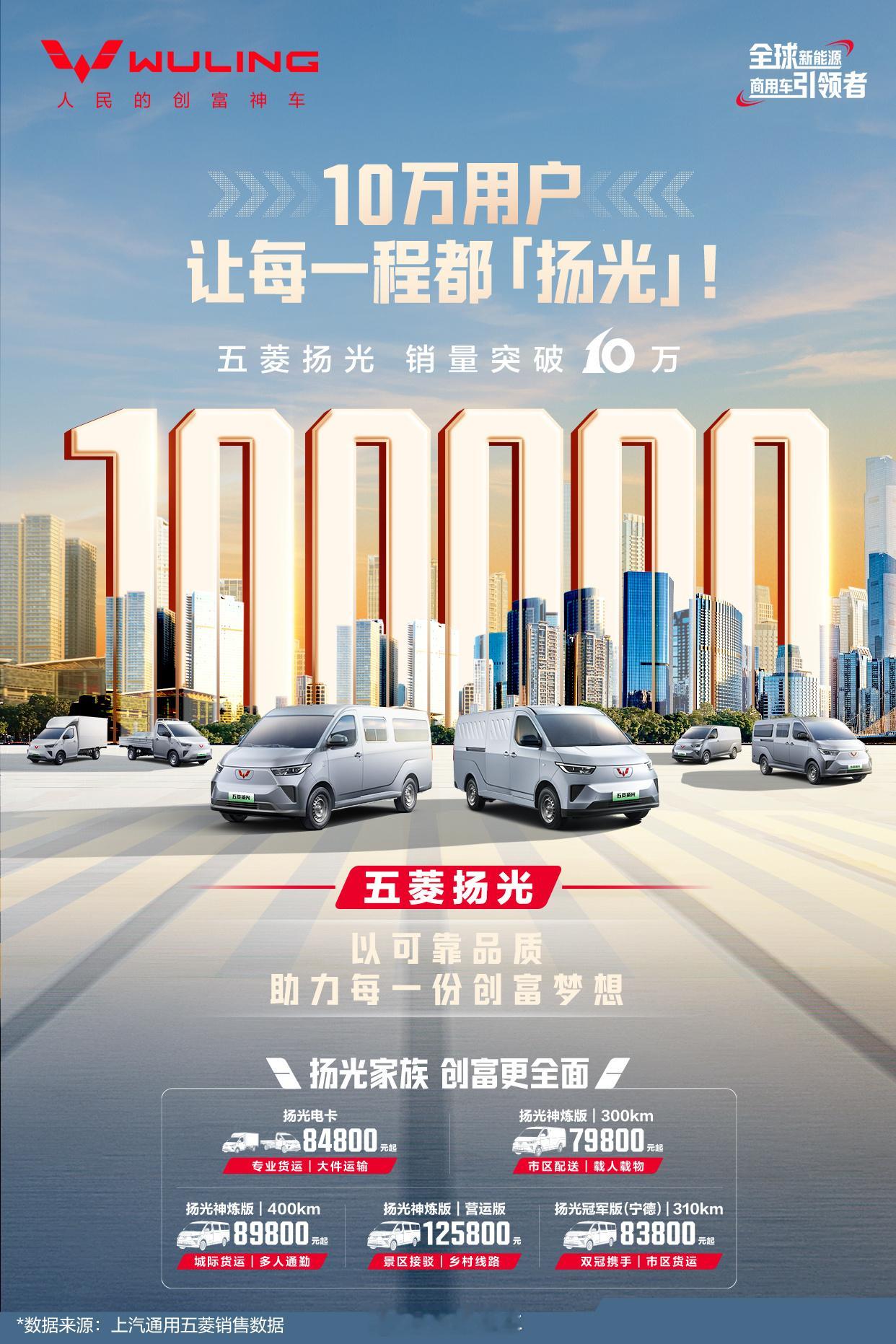 10万用户让每一程都扬光!五菱扬光销量突破10万台!