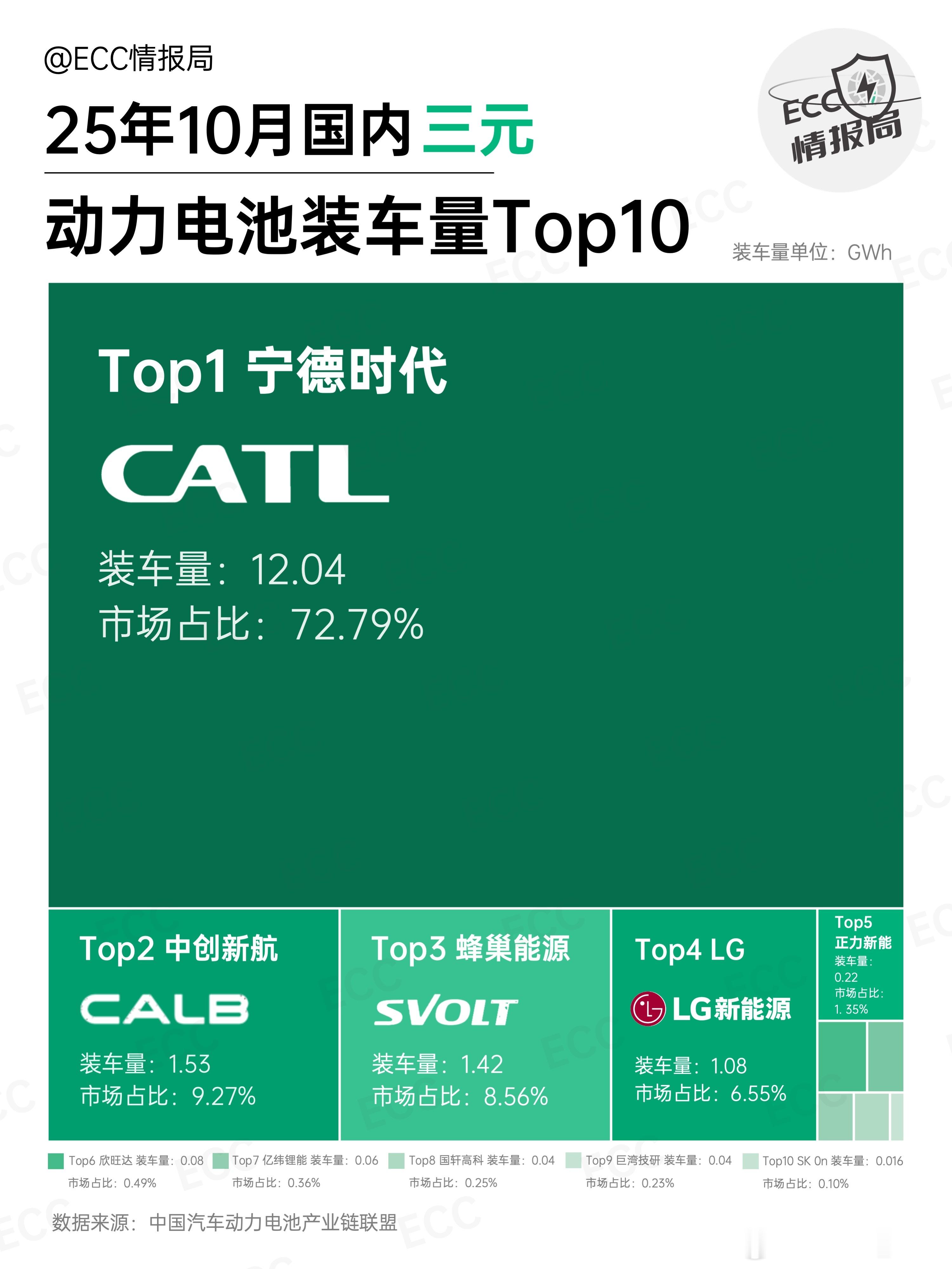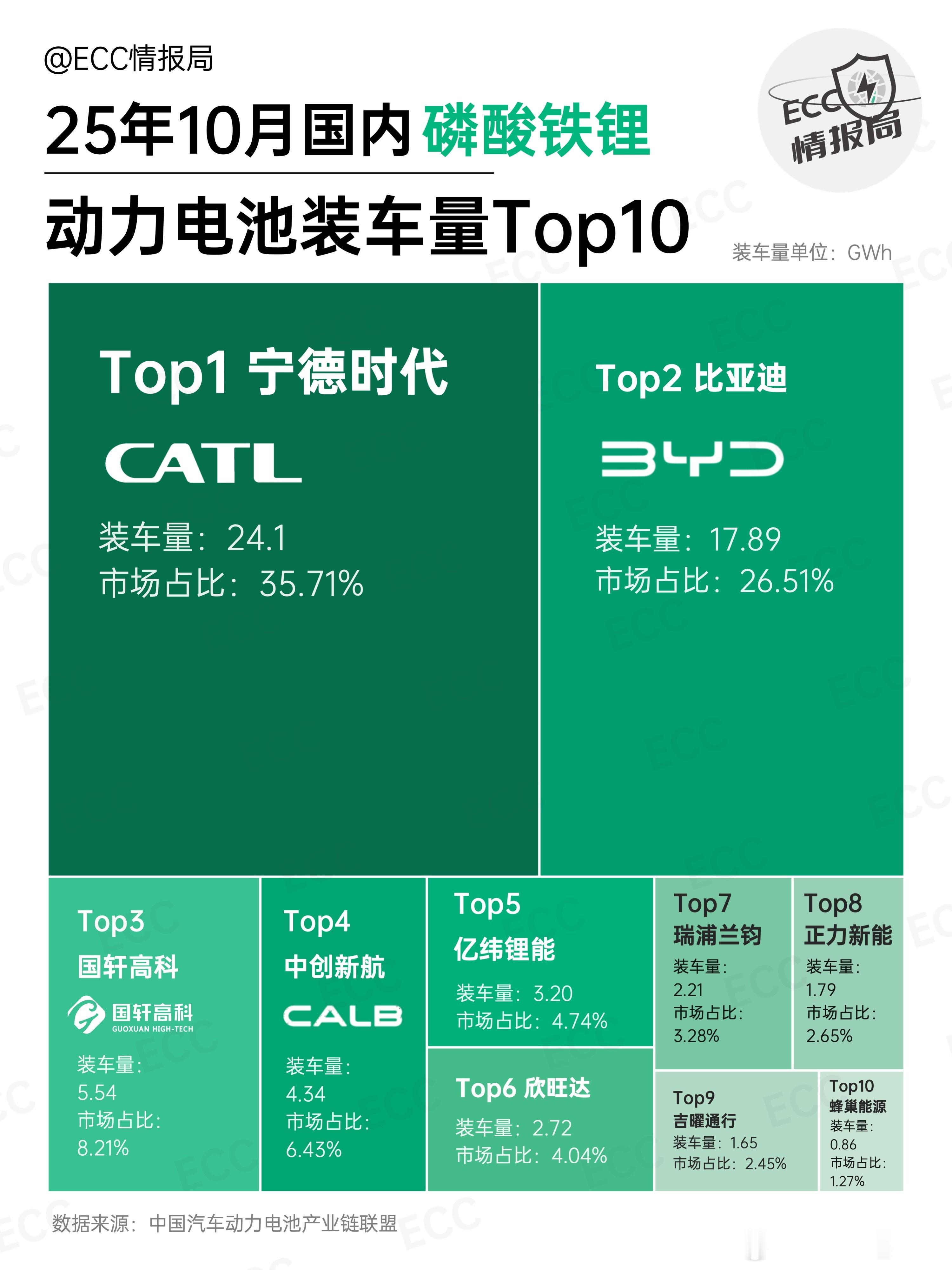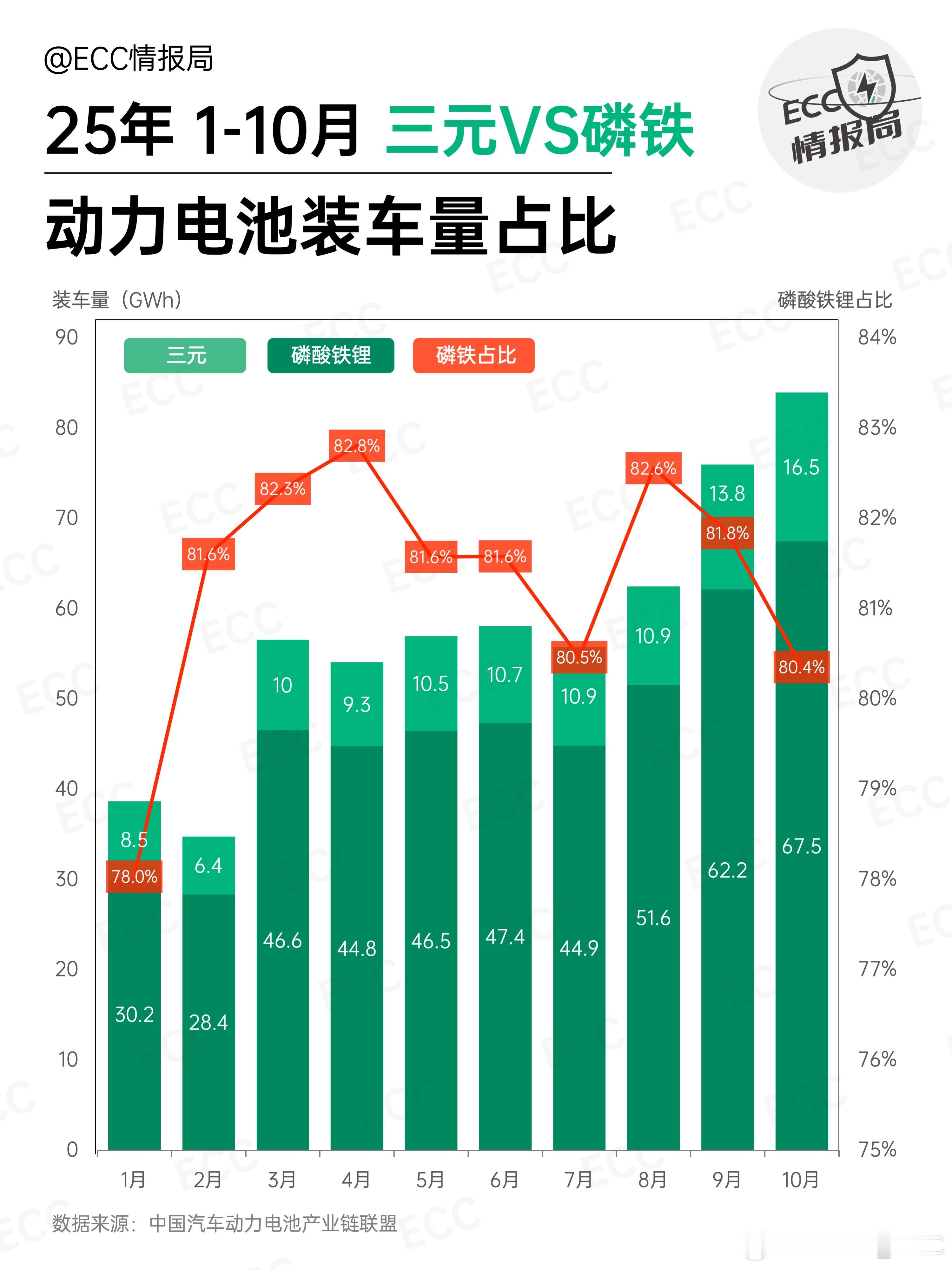 10 月国内动力电池装车量 84.1 GWh,同比增长 42.1%。其中三元 16.5 GWh(+35.8%)磷酸铁锂 67.5 GWh(+43.7%)装机量第一,依然都是宁德时代。