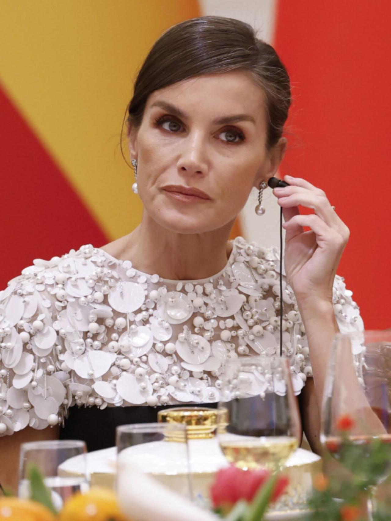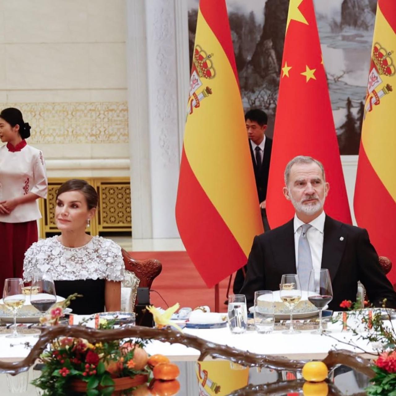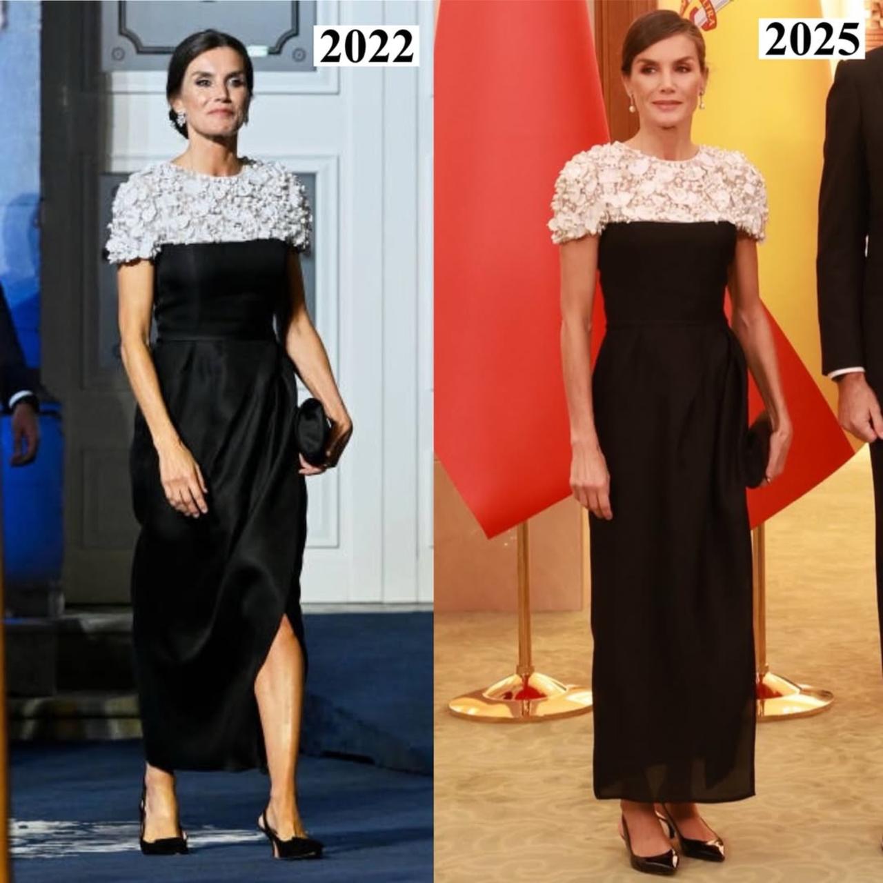 莱蒂齐亚王后颜值高,笑靥如花好惊艳 出席中方晚宴,莱蒂齐亚王后一袭黑色连衣裙惊艳亮相。肩部白色花卉刺绣精致点缀,搭配黑色高跟鞋,经典黑白配尽显高雅品味。整体造型简约自然,时尚感拉满,这位西班牙王后颜值与气质双在线,实在无可挑剔。
