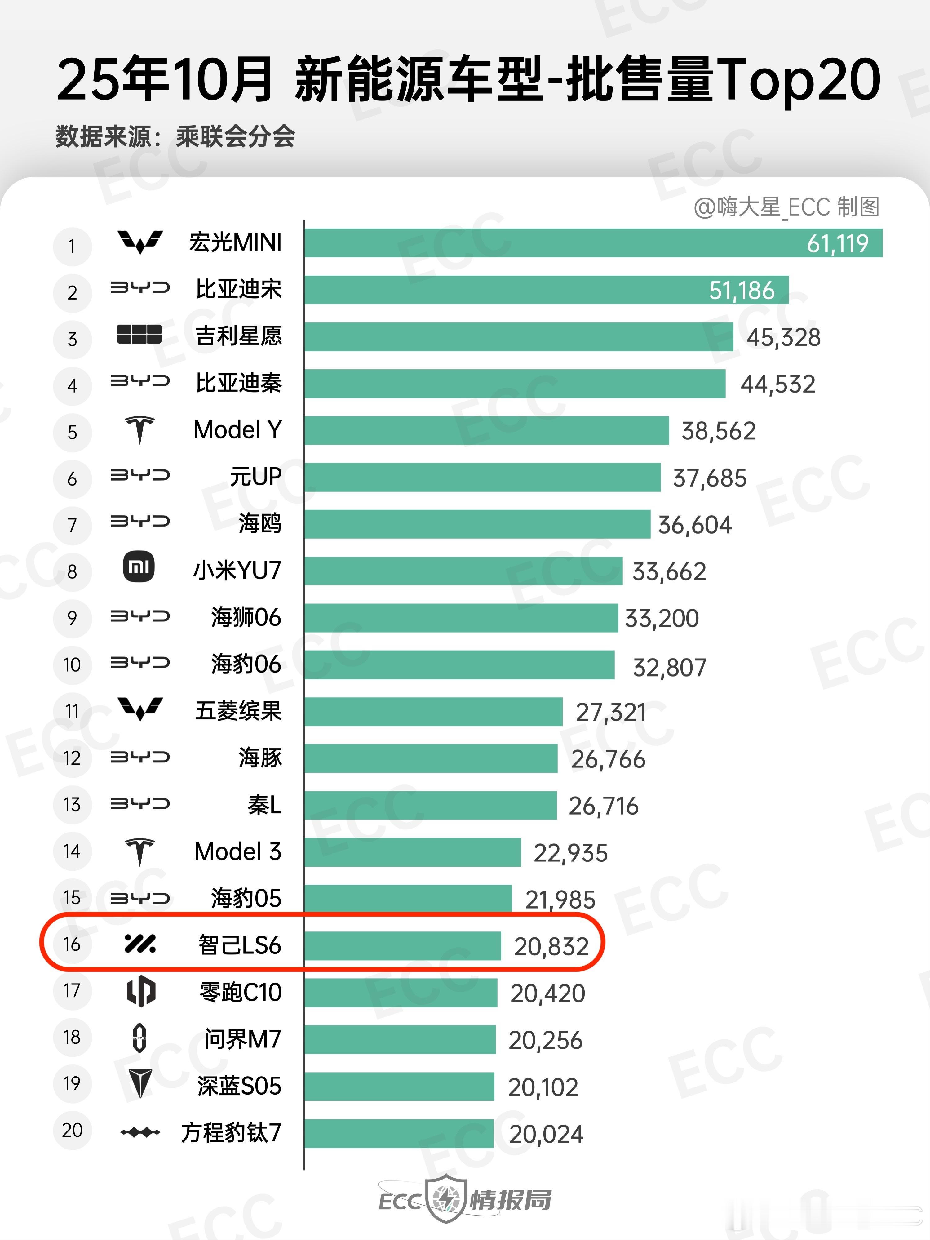 官方公布战报:上市 25 分钟订单破 5000。这个数字大概是当年 LS6 上市同期的一半,现在 LS6 在10月能做到月销 2 万,在所有新能源车型里能排到 Top16,成绩还是很猛的。那问题来了:LS9 的这波配置+价格,能不能把月销稳在 5000+ 呢?你们觉得有戏吗?