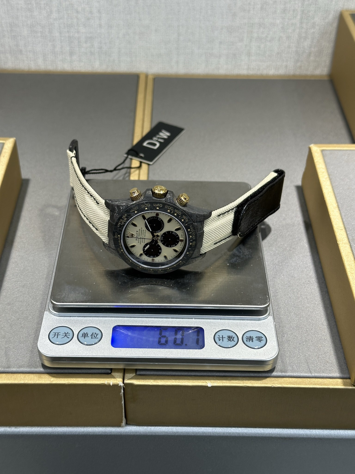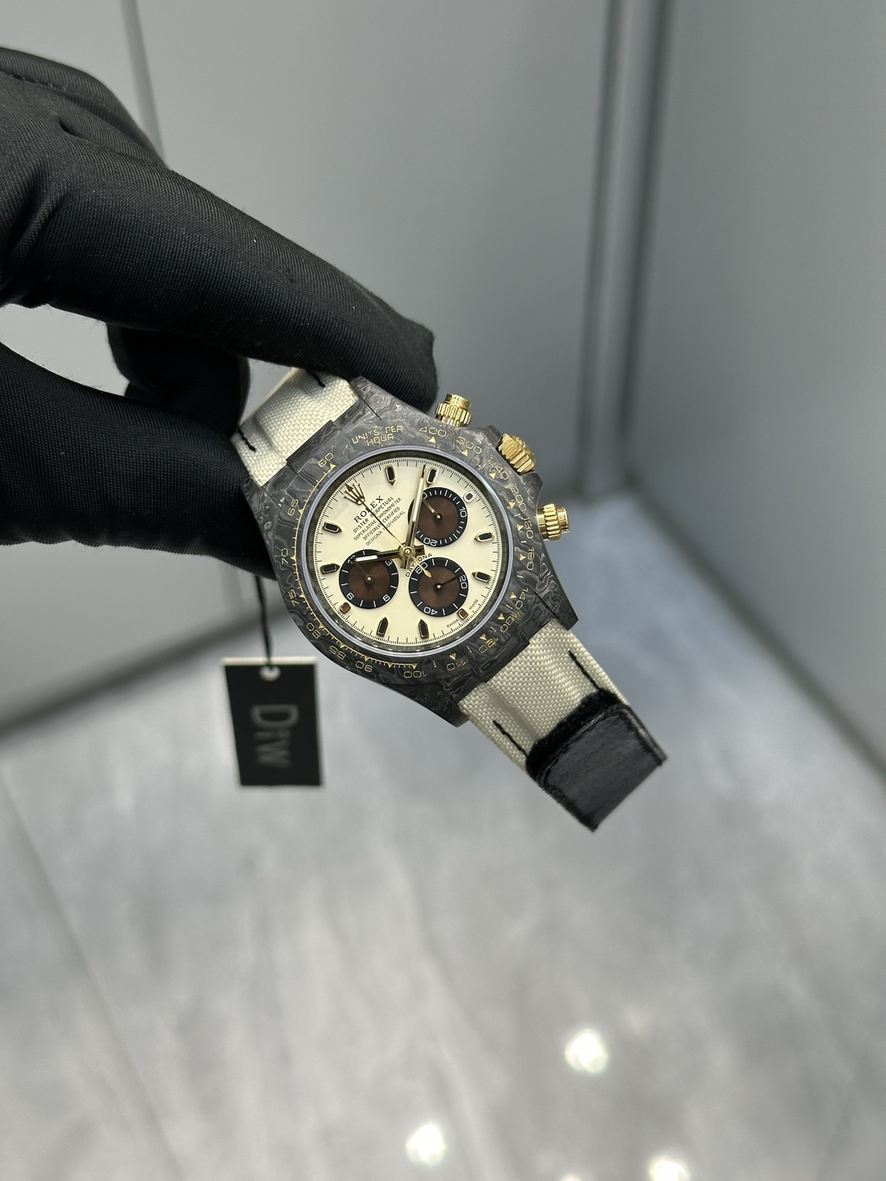 Diw 新作超级纤维迪通拿-惊艳现市原厂工艺顶级碳纤维材料打造纯碳纤维表壳,表圈,底盖,表扣搭配尼龙魔术贴表带直径40mm 厚度12.3mm采用超级4130机芯 所有结构功能尺寸均与原装完美吻合