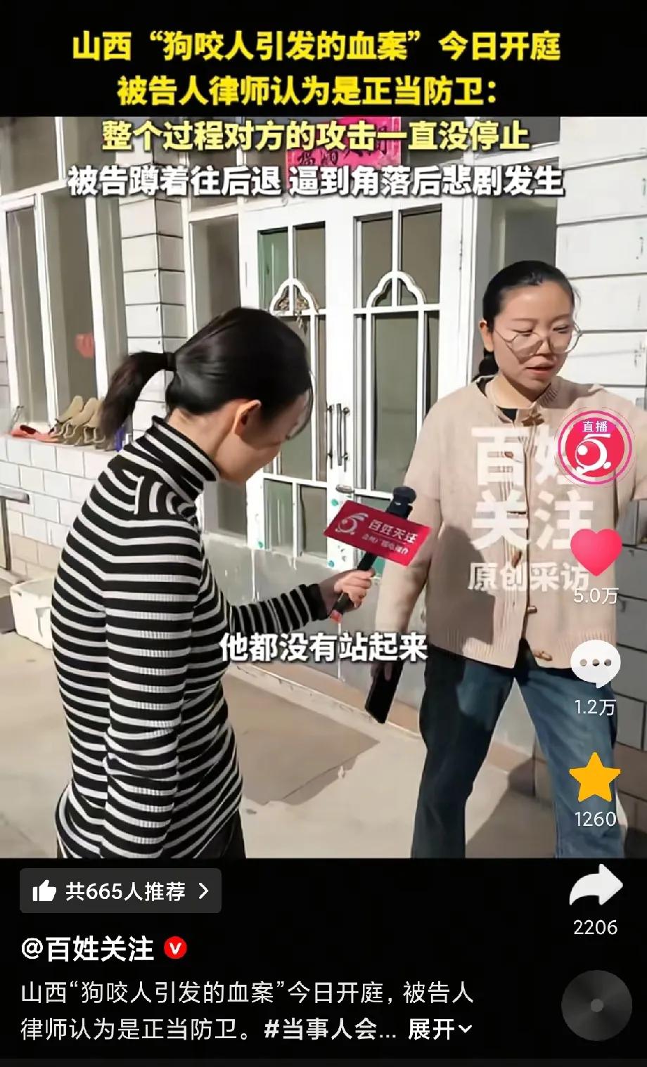 山西狗咬人事件,律师一句话让我恍然大悟!谁能想到,被告人是被好几个人围堵在墙角,一直半蹲着,难怪对方是伤到腿上的动脉失血噶的,而不是砍到脖子,头部,心脏位置。 被告人半蹲的姿势,更加说明当时是被侵害的状态,正好看到手头有能够保护自己的利器,走投无路,只好着急的拿起,乱刺,好让这些人知难而退。 参与的一共14个人,现场也是相当混乱,没有人看清到底是怎么伤到的。 支持正当防卫,不然有人到家里打砸找事,都不能还手,即便警察也过来调解过,也只能叮嘱,关好门窗,想想就很窒息。