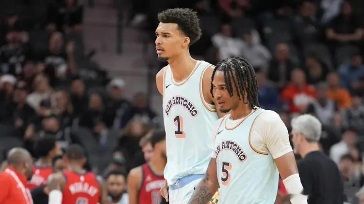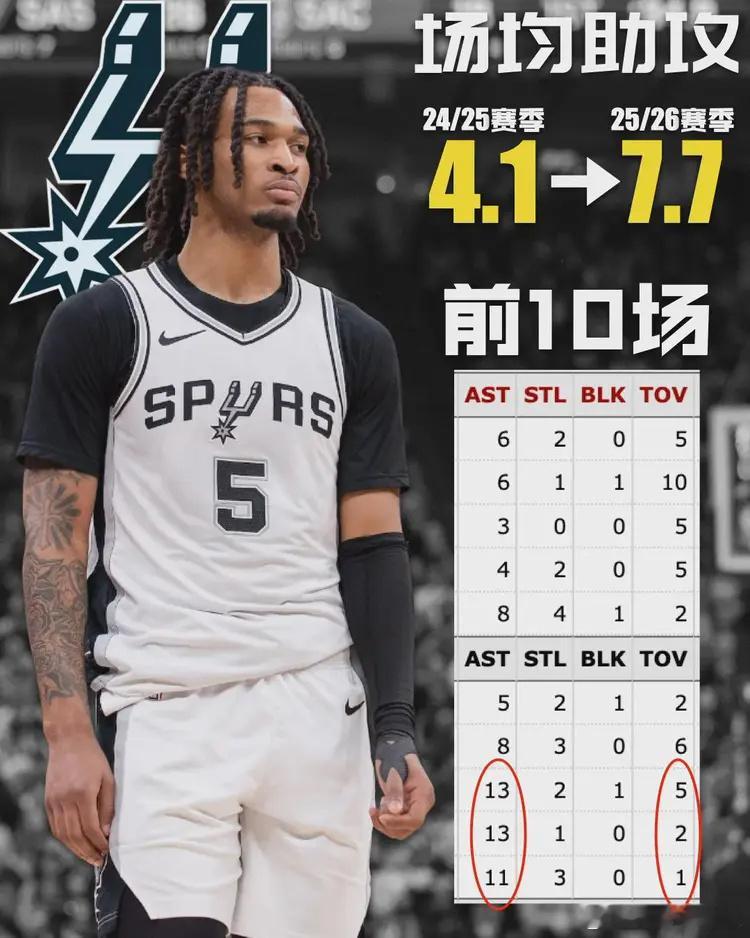 保罗,看看你对马刺干的好事!达伦-特里拼尽全力,身体失衡飞出界外,也没有成功封堵卡斯尔的突破。而赶来帮忙的杰伦-史密斯,也被卡斯尔虚晃一枪——马刺后卫并没有直接攻筐,反而是手腕顺势一甩,把球精准地喂到了篮下埋伏的文班亚马嘴边。文班接球的一瞬间,他相当诧异。他那没有防备的姿态,告诉大家他在想什么——“卡斯尔居然能把这球给传过来?