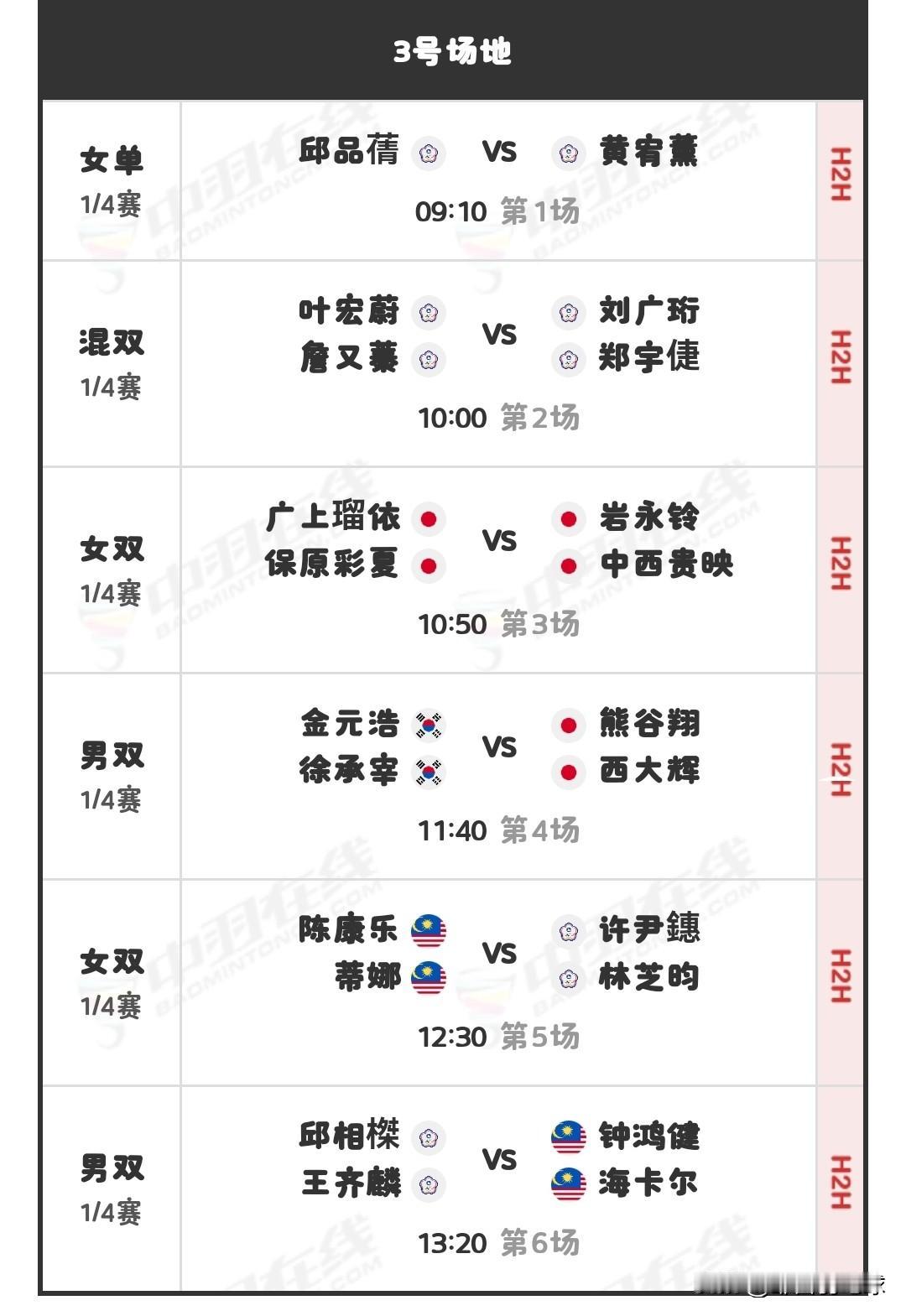 11月14日日本羽毛球大师赛1/4决赛赛程 安排 今日1/8比赛已全部收官,其中本站头号种子山口茜两局被队友奥原希望击败,爆冷淘汰出局。 明日上午北京时间09:00,1/4决赛将拉开帷幕。此站赛事,国羽因备战2025年第十五届全运会,未报名参赛。明日将上演拉克什亚对阵骆建佑、王子维对决格姆克、林俊易挑战奈良冈功大的精彩好戏。详细对阵安排如下: 羽毛球赛事 羽毛球 羽毛球爱好者 羽毛球比赛 羽毛球大师赛