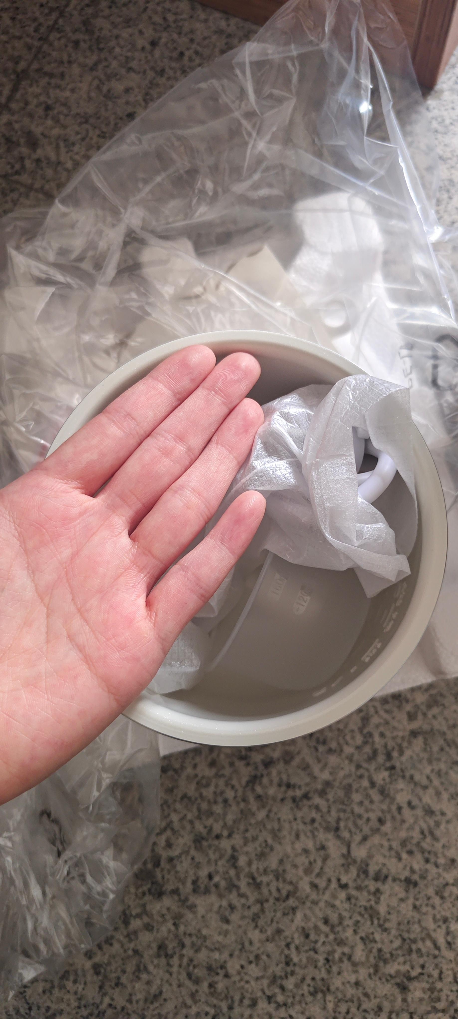 对计量单位没有概念的我。买了一个一人食的小电饭煲,但是也太迷你了吧,还没有手掌大。