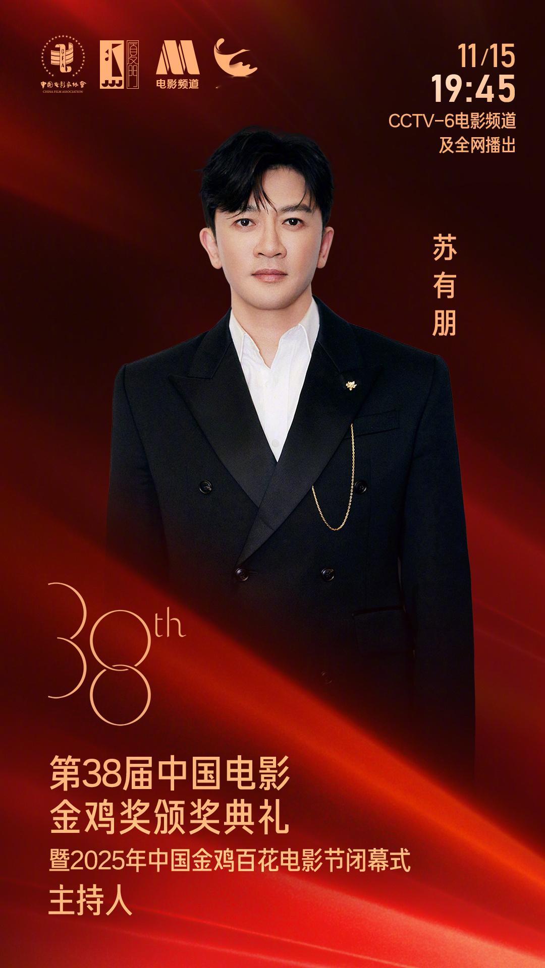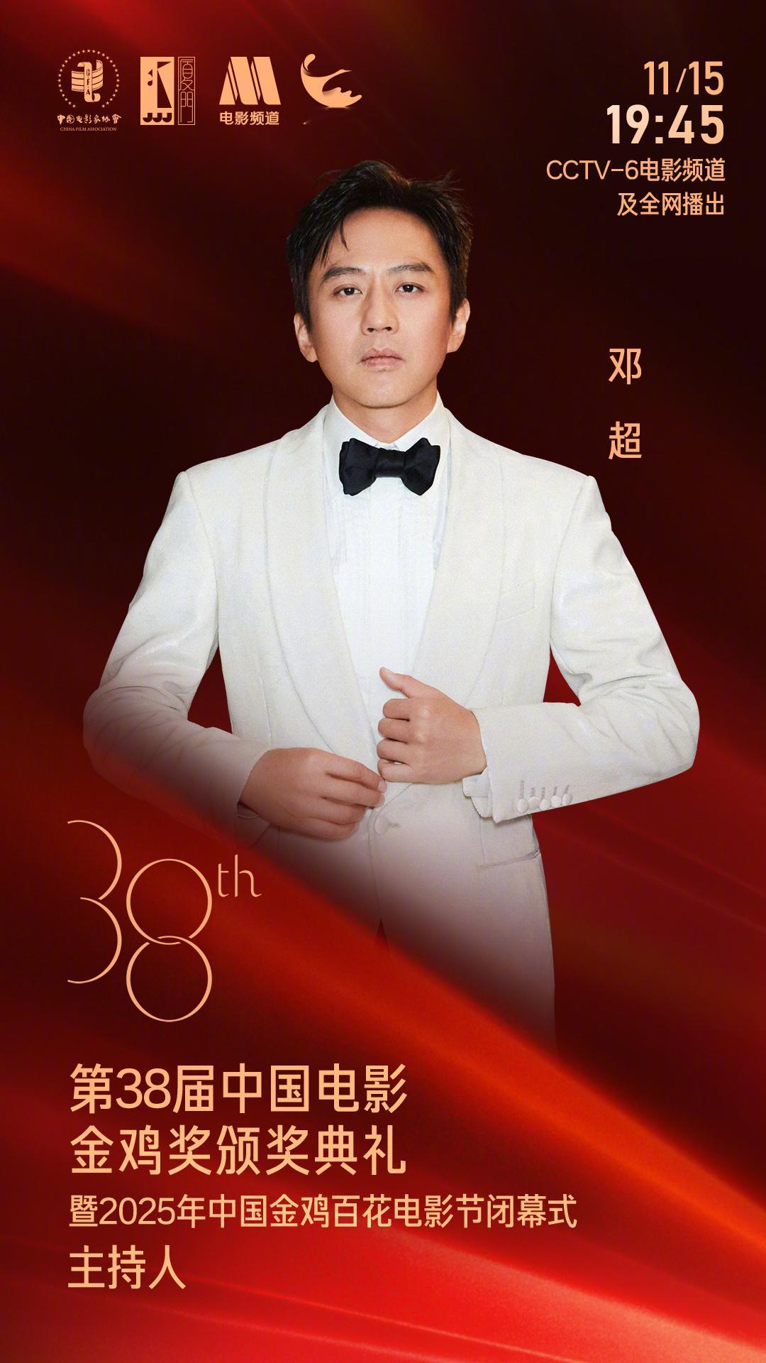 第38届中国电影颁奖典礼暨2025年中国金鸡百花电影节闭幕式主持阵容官宣:电影频道主持人蓝羽、电影人邓超、苏有朋、倪妮主持,其中邓超已是第五次主持金鸡奖,苏有朋第二次,倪妮则是第一次主持金鸡奖。金鸡奖颁奖典礼将于11月15日晚举办。金鸡奖颁奖典礼主持阵容