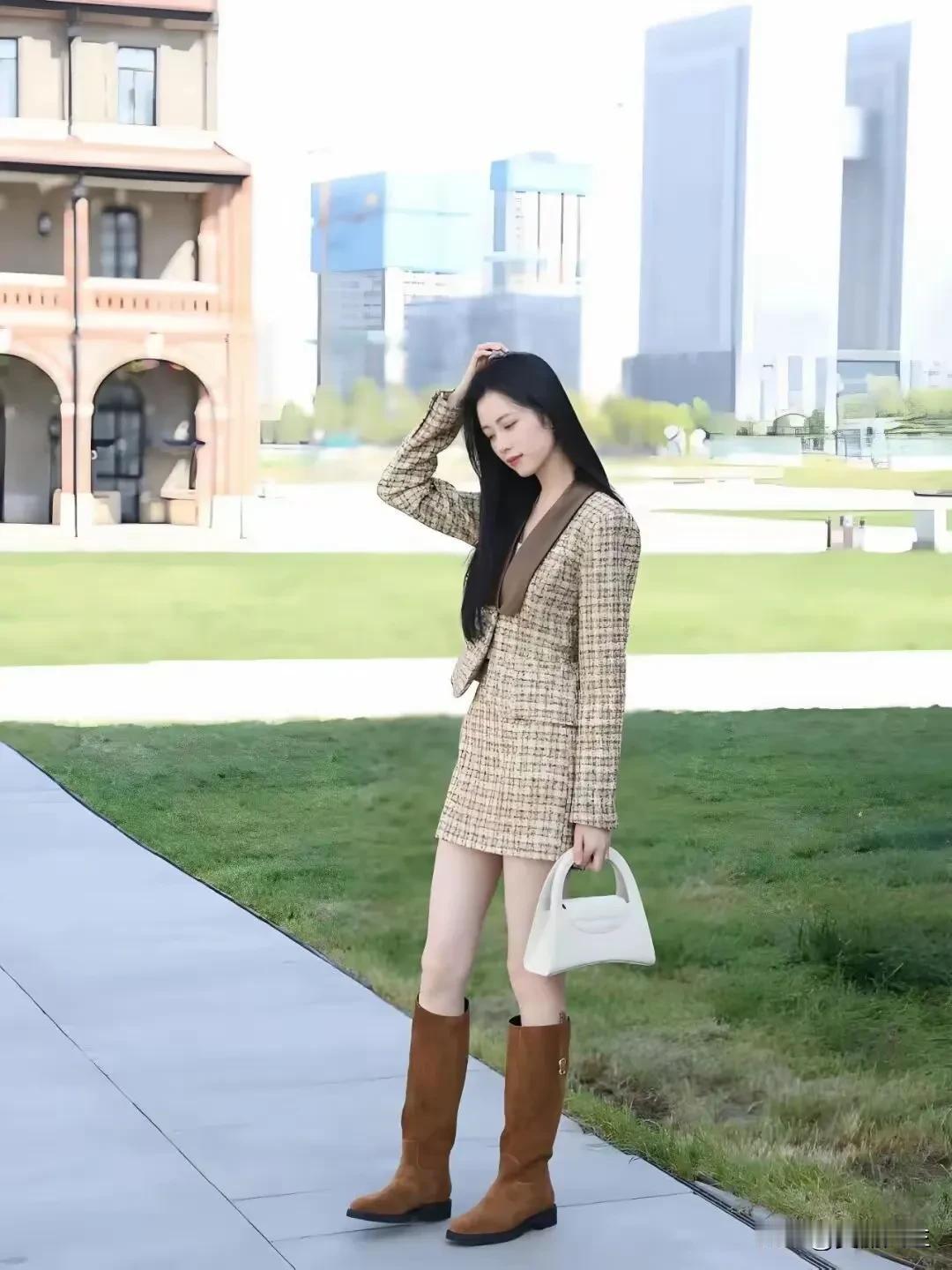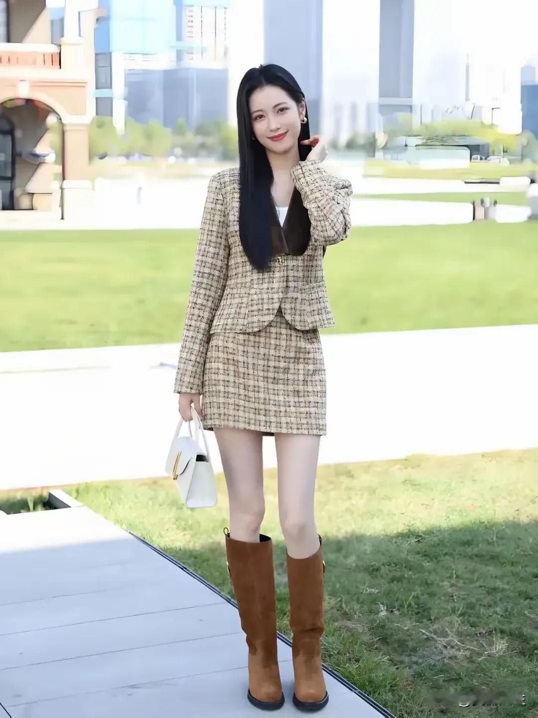 鎏金时光里的浪漫邂逅!刘美希的秋日穿搭自带滤镜,与金黄银杏相映成趣,优雅氛围感直