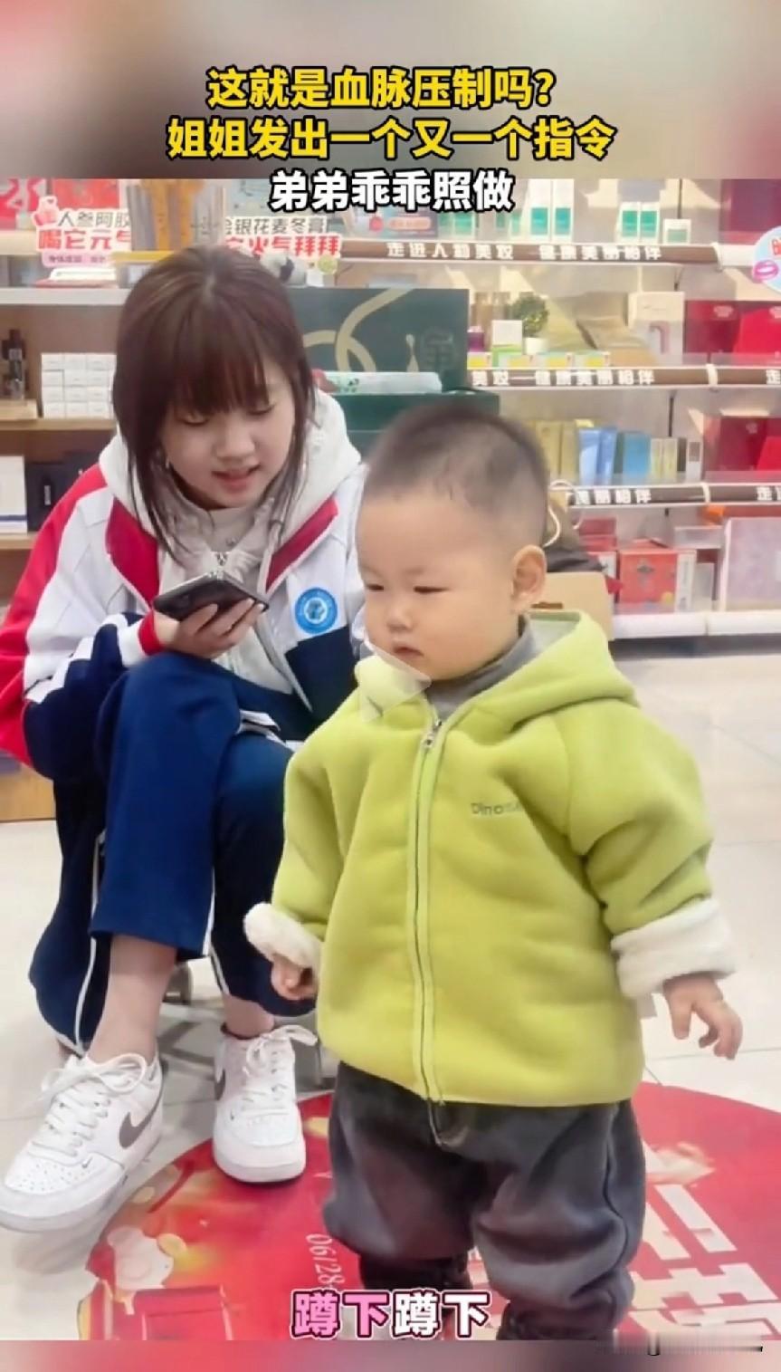 姐弟“血脉压制”名场面:姐姐的话,就是最高指令! 谁还没见过姐弟间的“血脉压制”名场面?简直是家庭日常里最鲜活的快乐源泉! 视频里的姐姐,妥妥的“家庭小指挥官”,下达指令时干脆利落,没有一丝拖泥带水。一句“把玩具收拾好”“过来帮我拿东西”,语气坚定又自带威严,仿佛天生带着“说一不二”的buff,无需多余解释,气场直接拉满。 再看咱们的小孩哥,那乖巧程度直接焊死在“听话模式”里!姐姐说东绝不往西,姐姐让站着绝不坐着,全程眼神专注、动作迅速,把“照做”二字贯彻到底。哪怕是不情愿的小情绪,也只敢藏在眼底一闪而过,连个反抗的小眼神都不敢轻易流露,那小模样分明写着“我姐说的都对,听姐的准没错”,活脱脱一个“姐控小忠犬”。 这波互动不仅把姐弟间的有爱氛围拉满,更完美诠释了什么叫“姐姐的话就是圣旨”。没有争吵,没有拉扯,全是弟弟心甘情愿的顺从和姐姐理所当然的“指挥”,这种无需言说的默契,正是姐弟情深最真实的模样。 而这温馨的一幕,也恰好印证了“训弟弟要趁早”的真理。小时候立好规矩、树好权威,姐姐的话就是行为准则,等弟弟长大,这份“听从”会慢慢变成尊重与守护,这份从小沉淀的感情,也会成为彼此最珍贵的羁绊。 其实姐弟间的“血脉压制”,从来都不是真正的压迫,而是藏在日常里的偏爱与依赖。弟弟的乖巧是对姐姐的信任,姐姐的“强势”是对弟弟的守护。这样的互动既可爱又暖心,让人忍不住感叹:有个能“拿捏”弟弟的姐姐,或是有个听话懂事的弟弟,真的太幸福了!