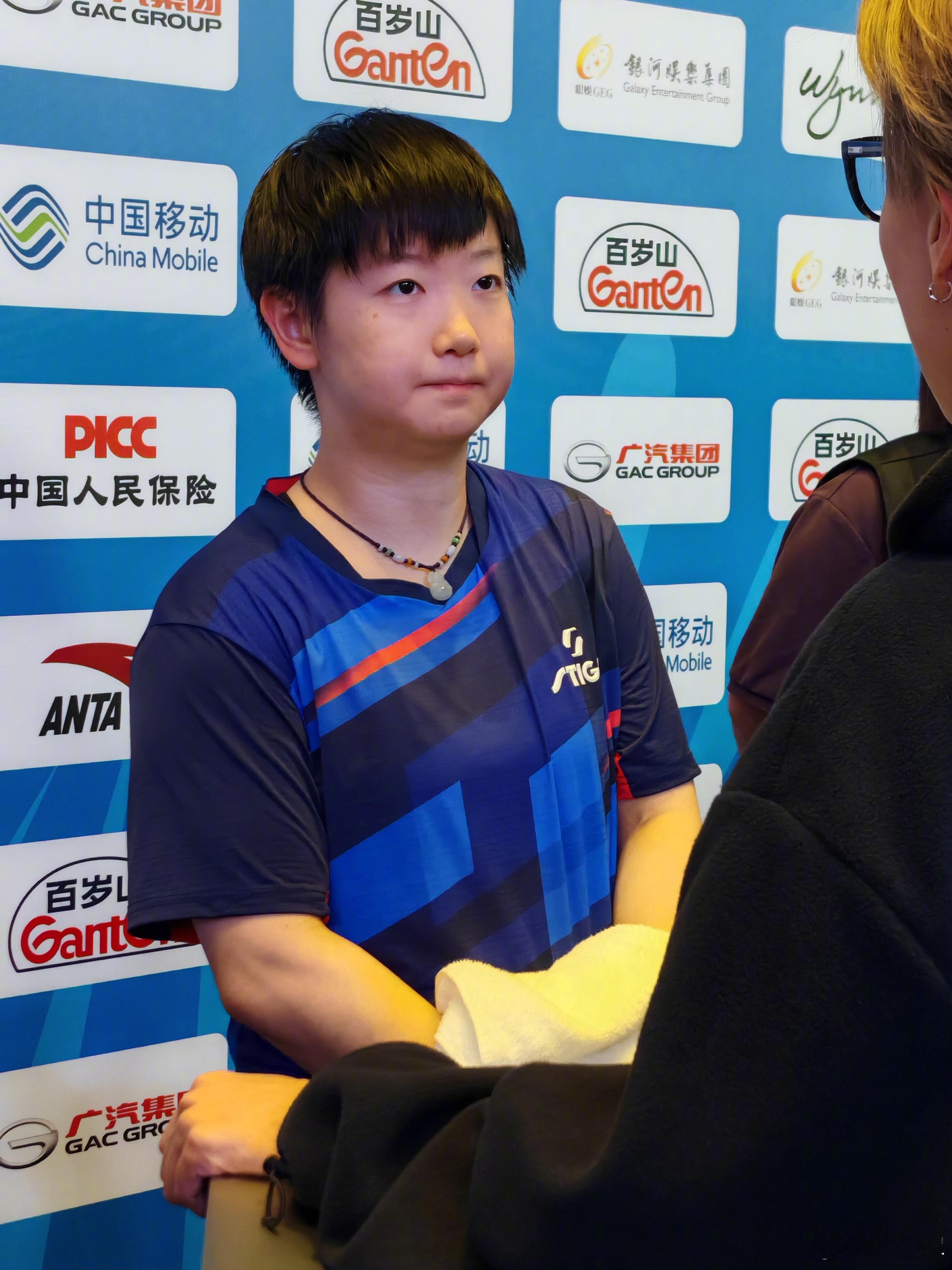 女单1/4决赛后,王曼昱在混采区接受媒体采访!