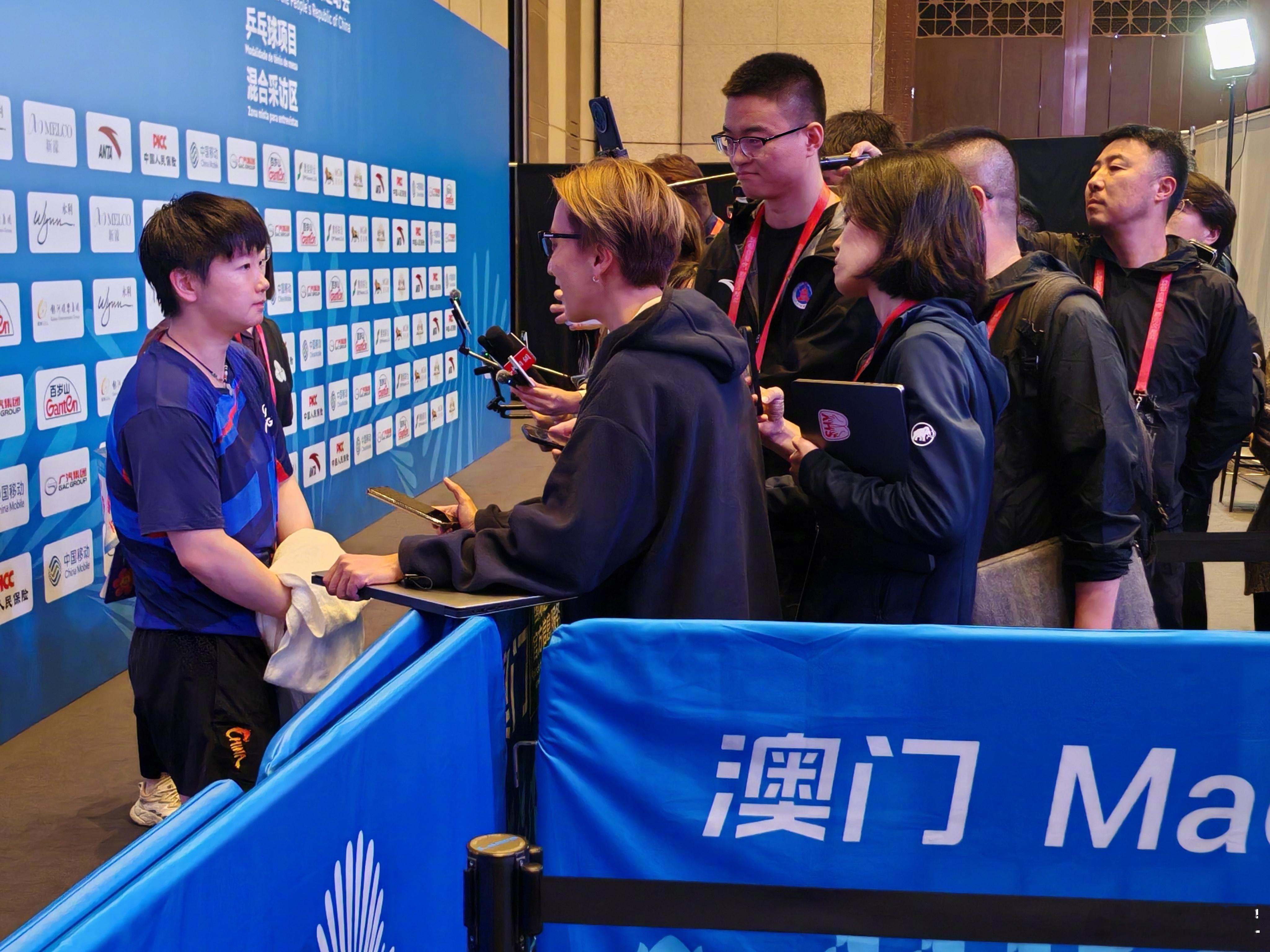 男单1/4决赛后,王楚钦在混采区接受媒体采访!