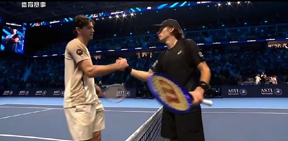 德米纳尔7:6、6:3总比分2:0击败弗里茨,这样的比分让这个小组的出线形势着实有点扑朔迷离。 现在唯一确定的是,弗里茨已经淘汰了,因为算小分,德米纳尔比弗里茨多赢了一盘。 而德米纳尔能否出线,就看阿卡和穆塞蒂的比分了。如果穆塞蒂战胜阿卡,穆塞蒂和阿卡携手出线。如果阿卡2:0赢下穆塞蒂,德米纳尔和阿卡出线。如果阿卡2:1击败穆塞蒂,那德米纳尔和穆塞蒂比小分。 德米纳尔和穆塞蒂,大家更看好谁?反正我看好穆塞蒂,德米纳尔到最后还是白忙活一场。只能说弗里茨今天太不争气,哪怕多拿下一局比赛,他的出线形势也会非常明朗!