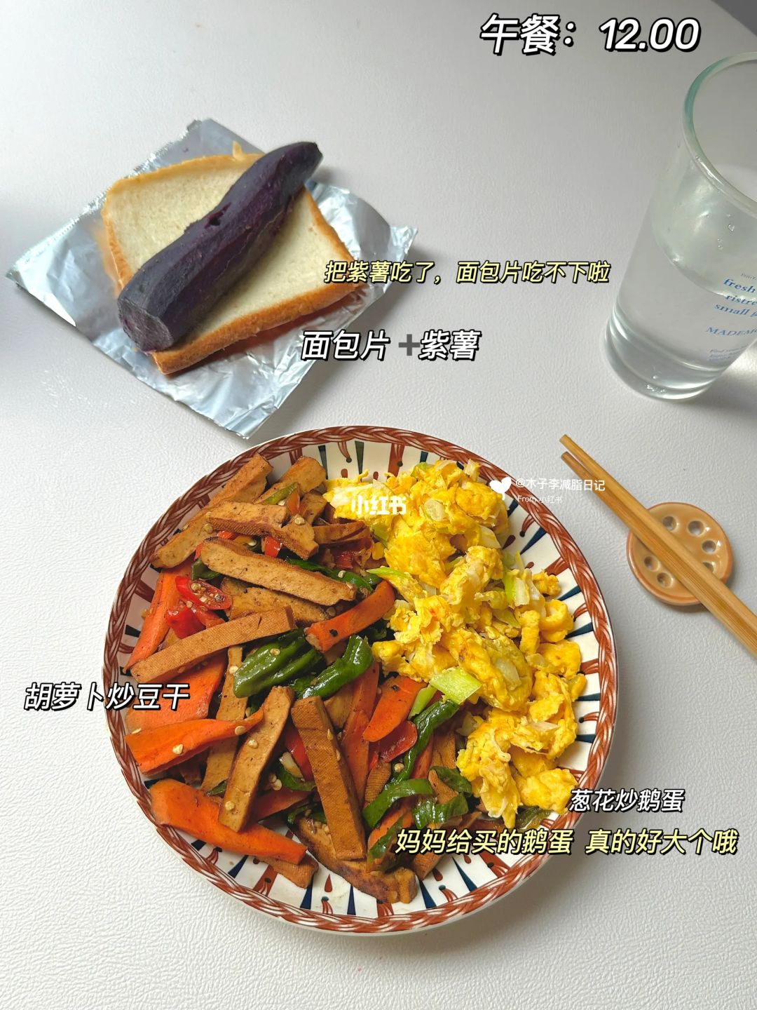 🥣午:葱花炒鹅蛋 | 胡萝卜炒豆干 | 紫薯