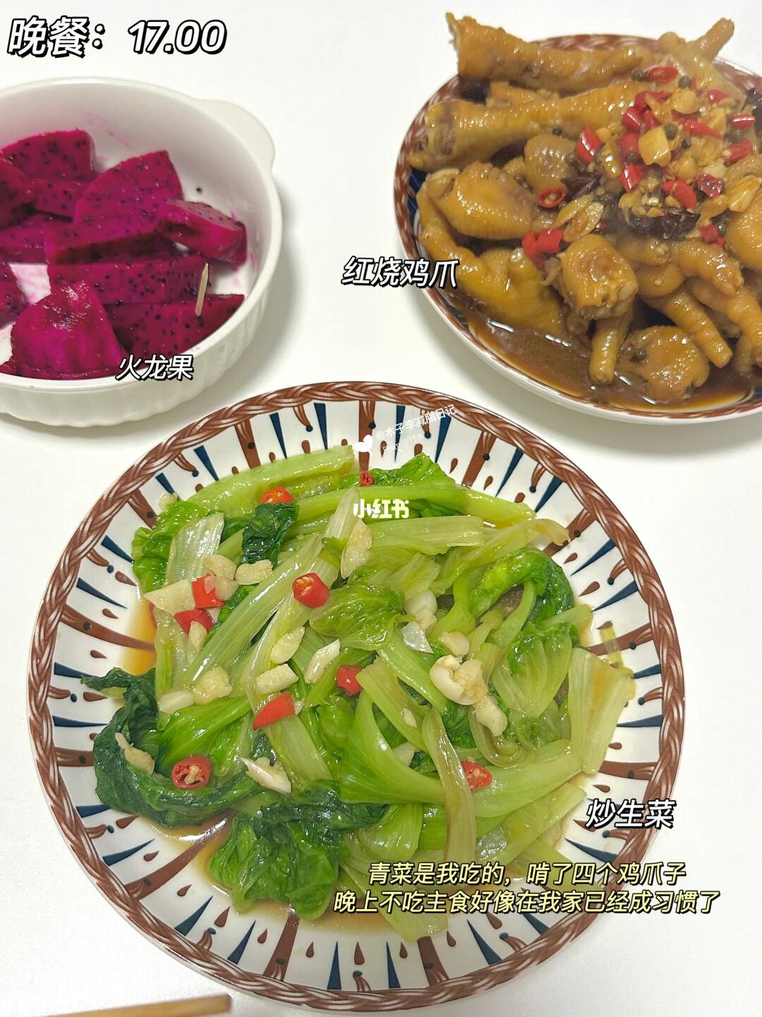 🥣晚:炒生菜 | 鸡爪 | 火龙果