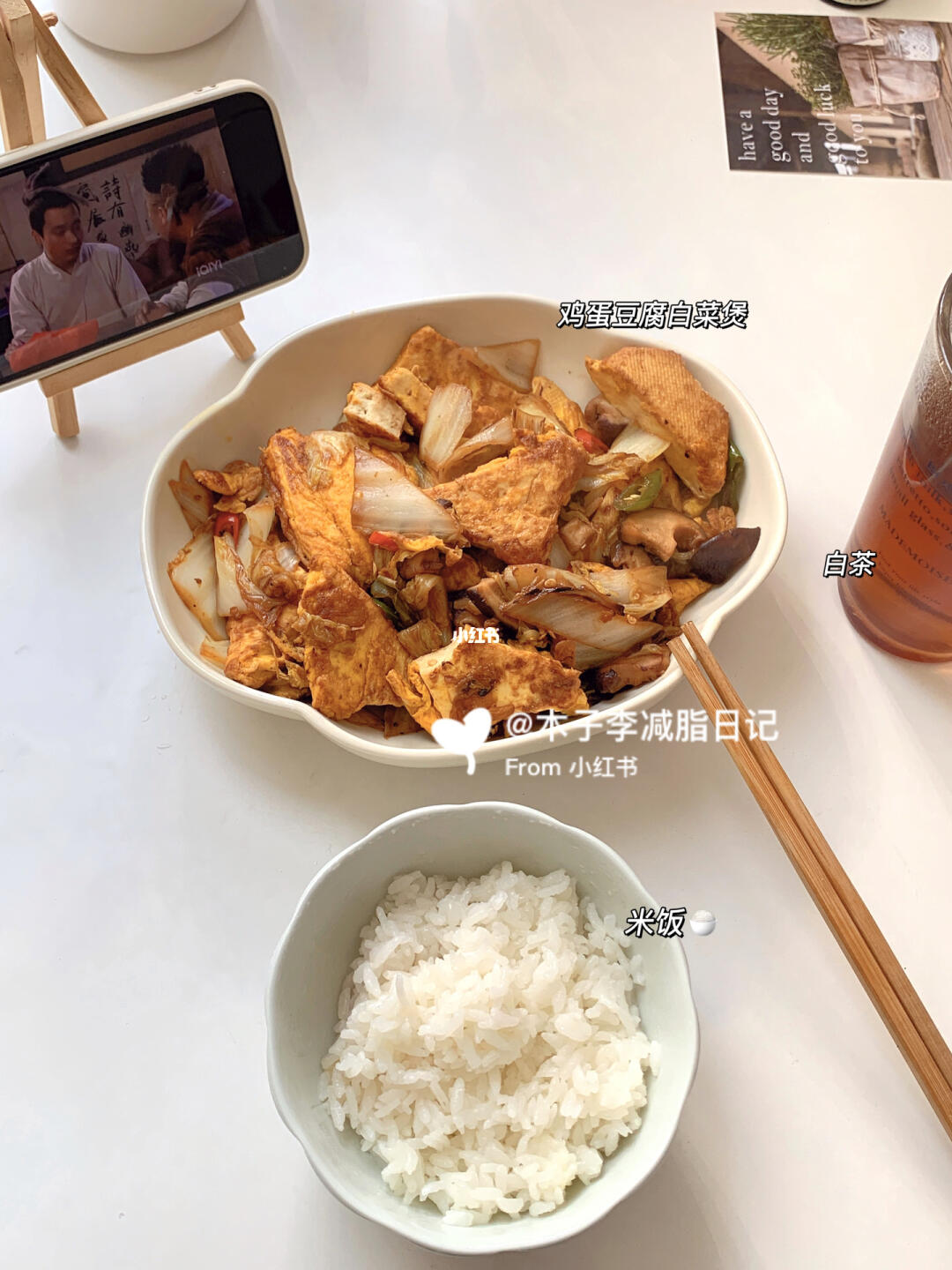 午餐:鸡蛋豆腐白菜煲|米饭🍚