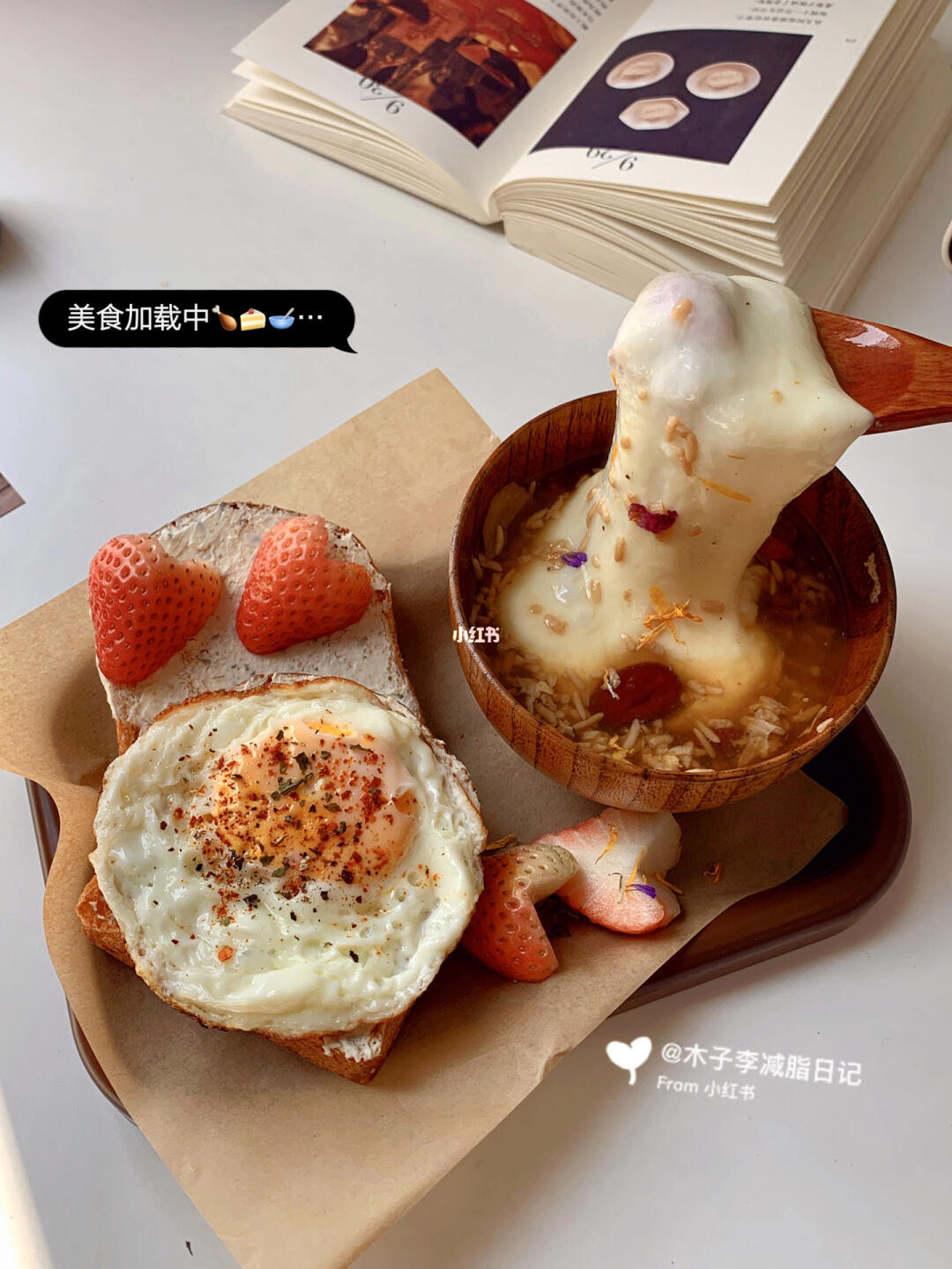 早餐:红糖酒酿麻薯|蒜香奶酪吐司|草莓🍓